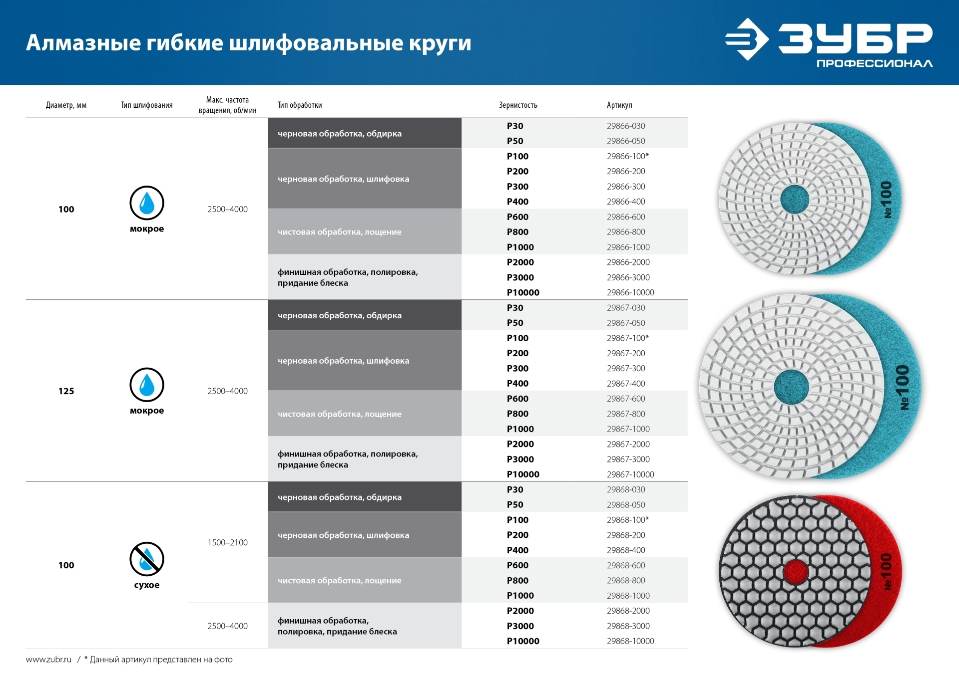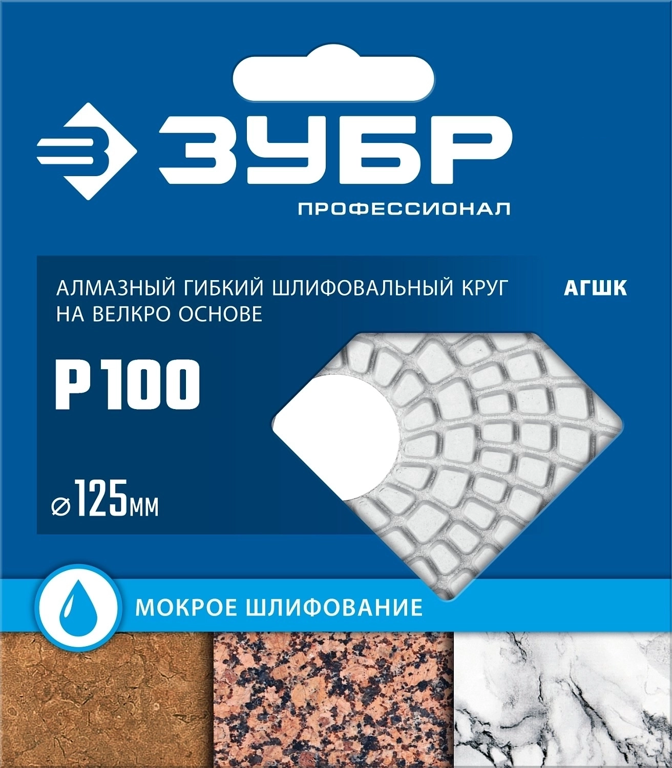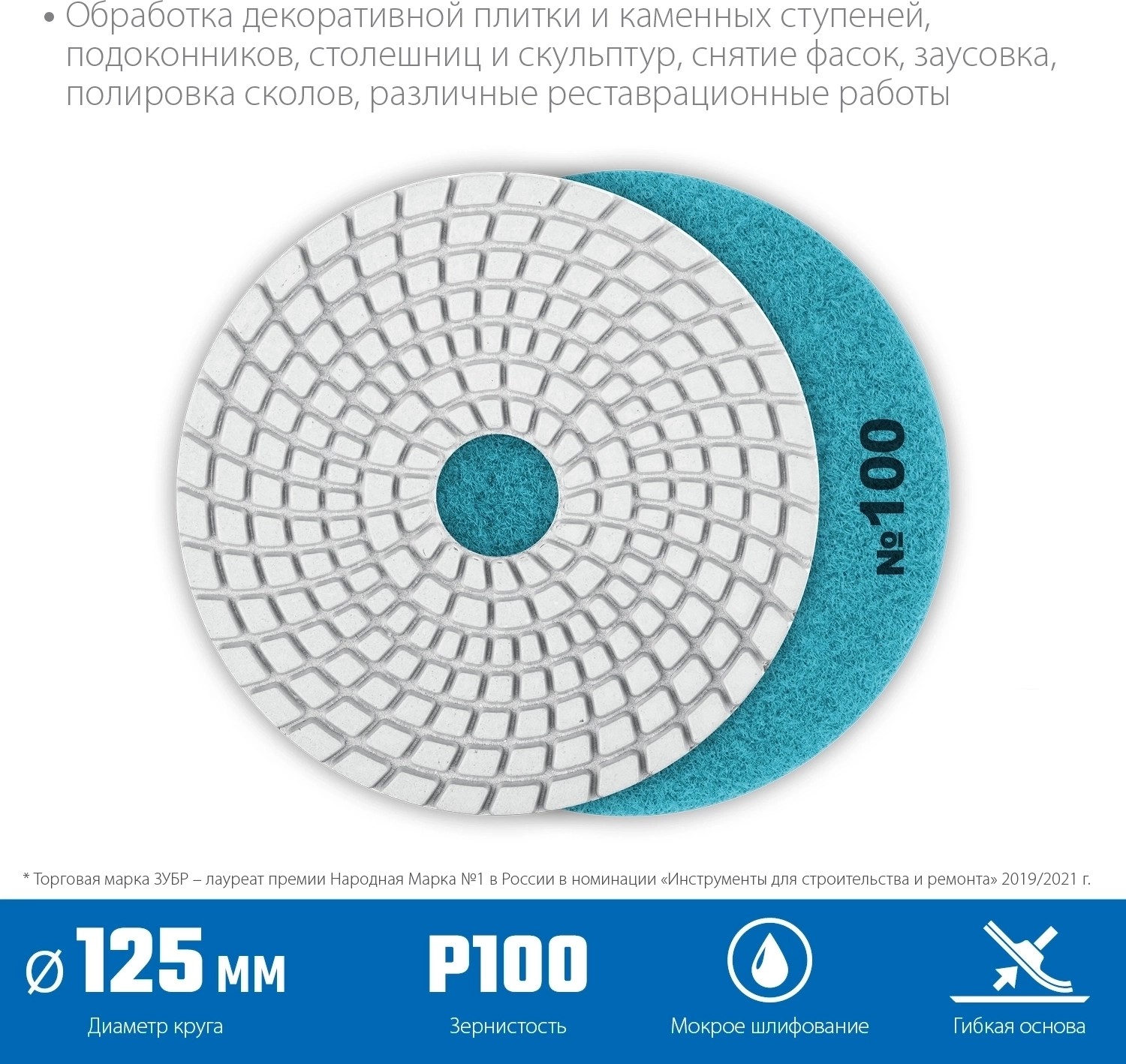Алмазный шлифовальный круг ЗУБР 125 мм №100 мокрое шлифование гибкий