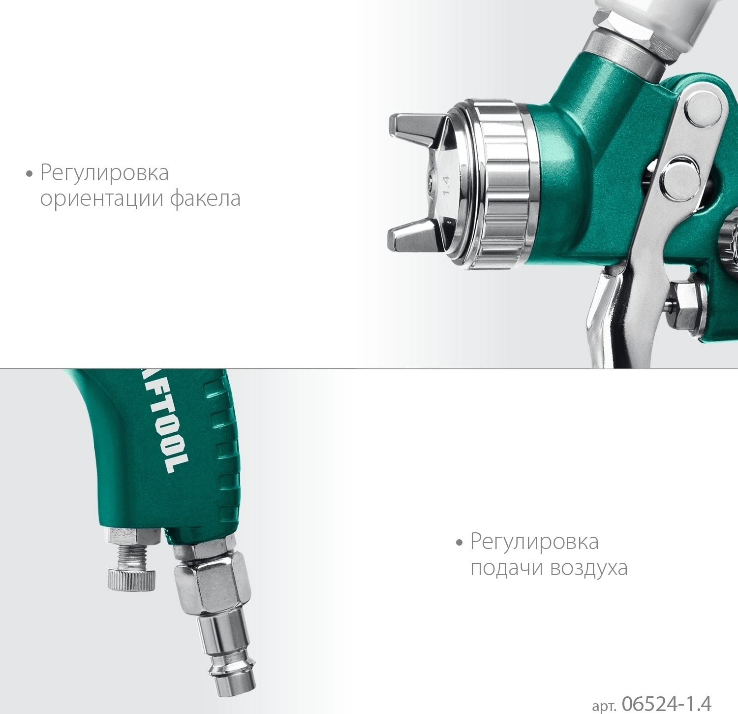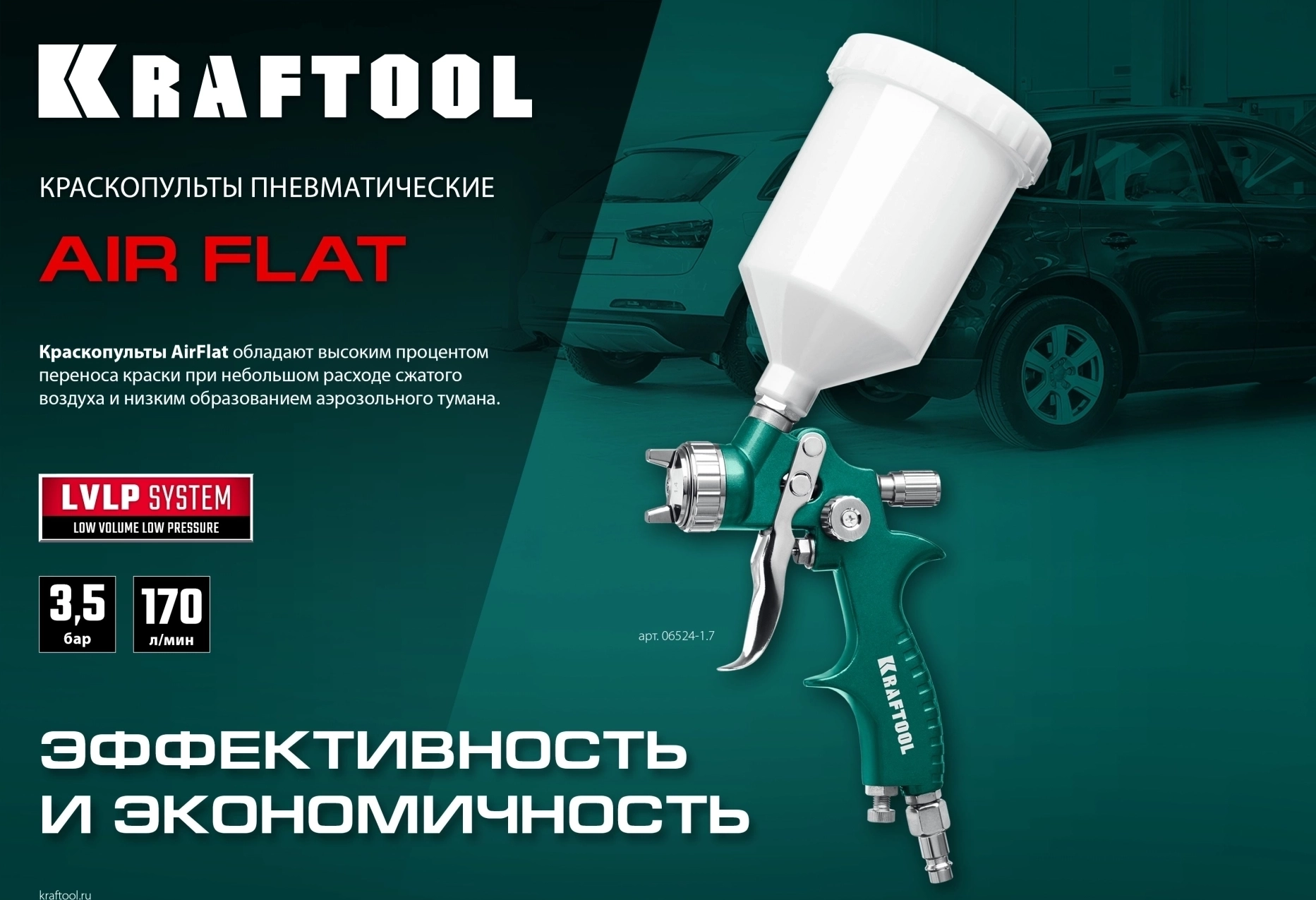 Пневматический краскопульт с верхним бачком KRAFTOOL AirFlat, LVLP, 1.4 мм