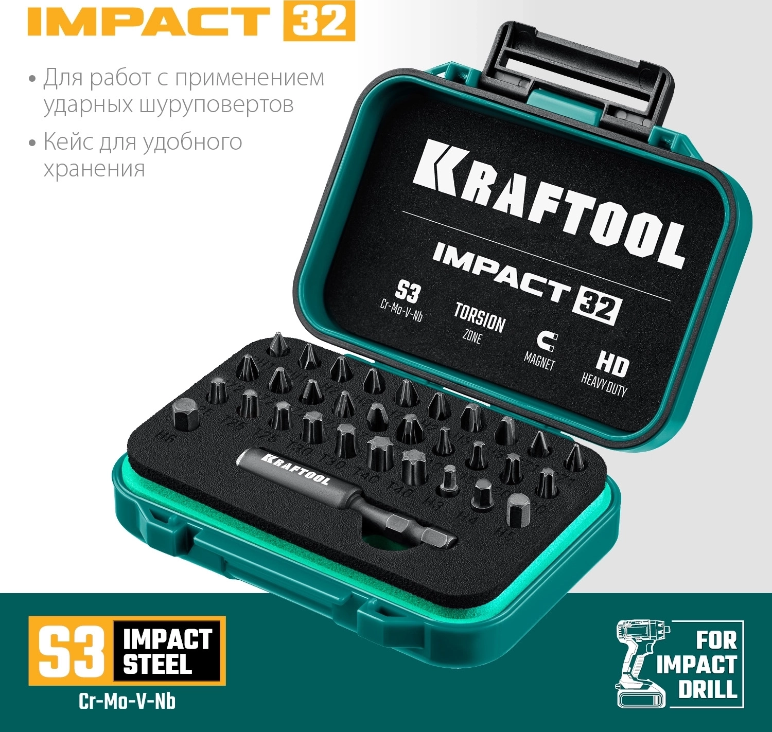 Набор ударных бит KRAFTOOL Impact-32, 32 шт