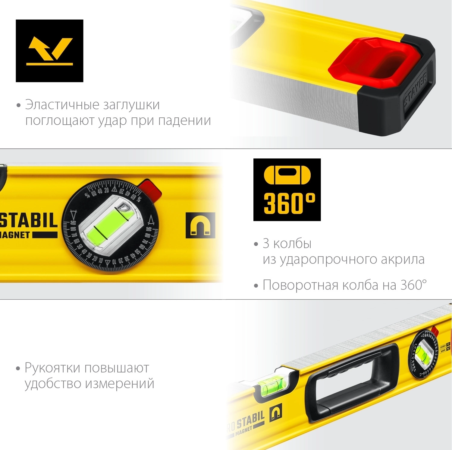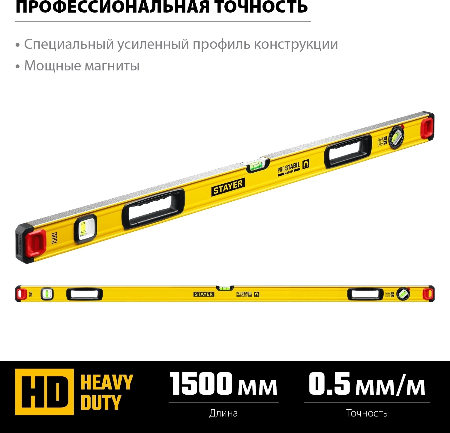 Магнитный уровень с поворотным глазком Professional STAYER PRO STABIL 1500 мм усиленный профиль