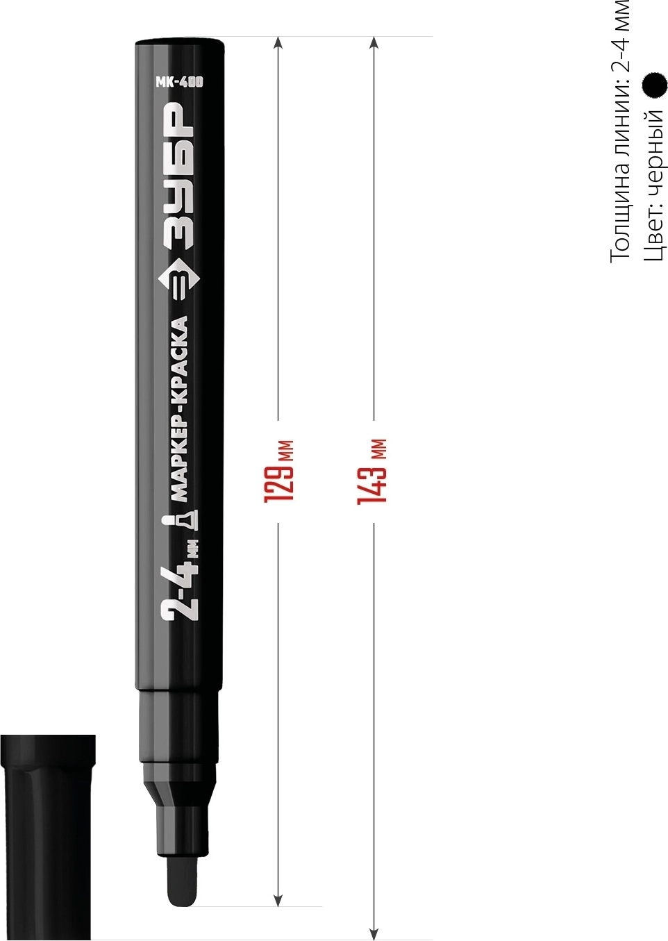 Маркер-краска ЗУБР МК-400 2-4 мм, черный
