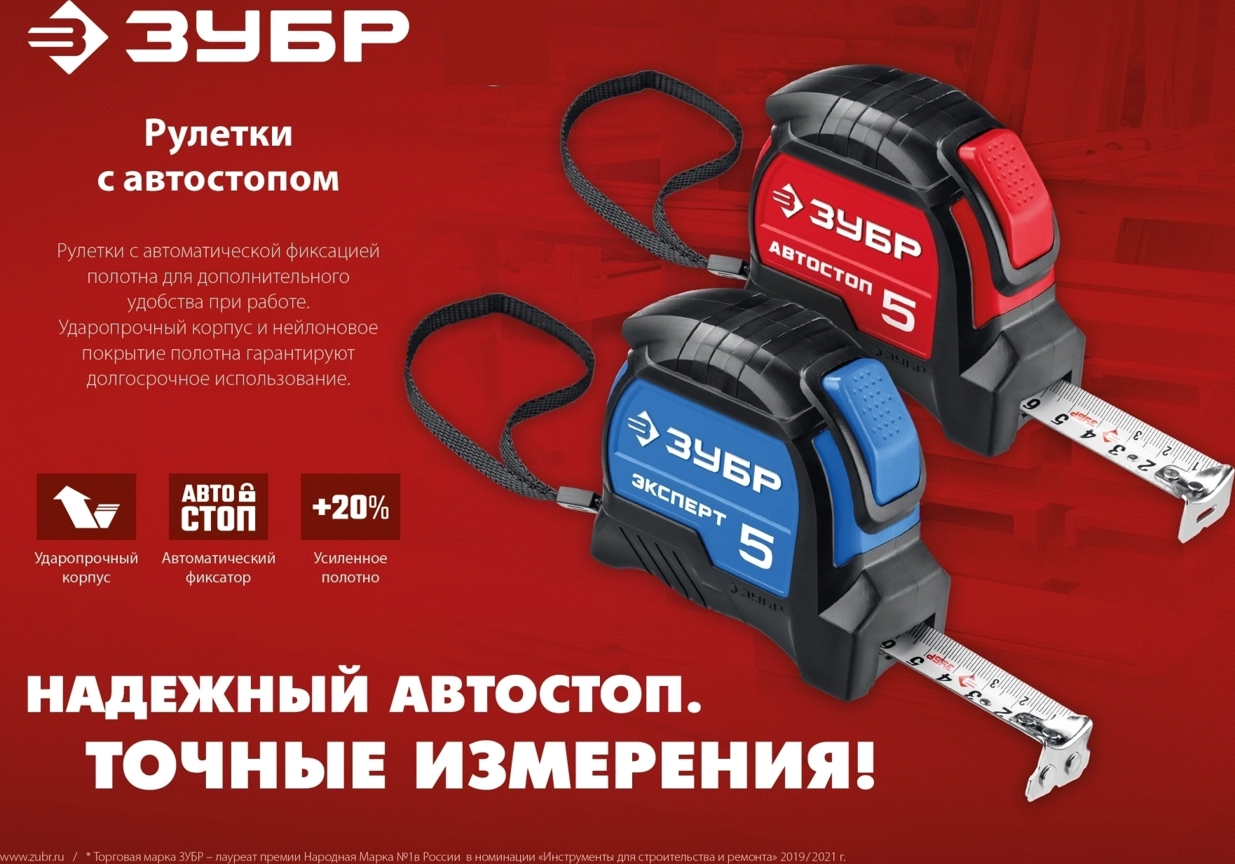 Рулетка с автостопом ЗУБР 5 м х 25 мм