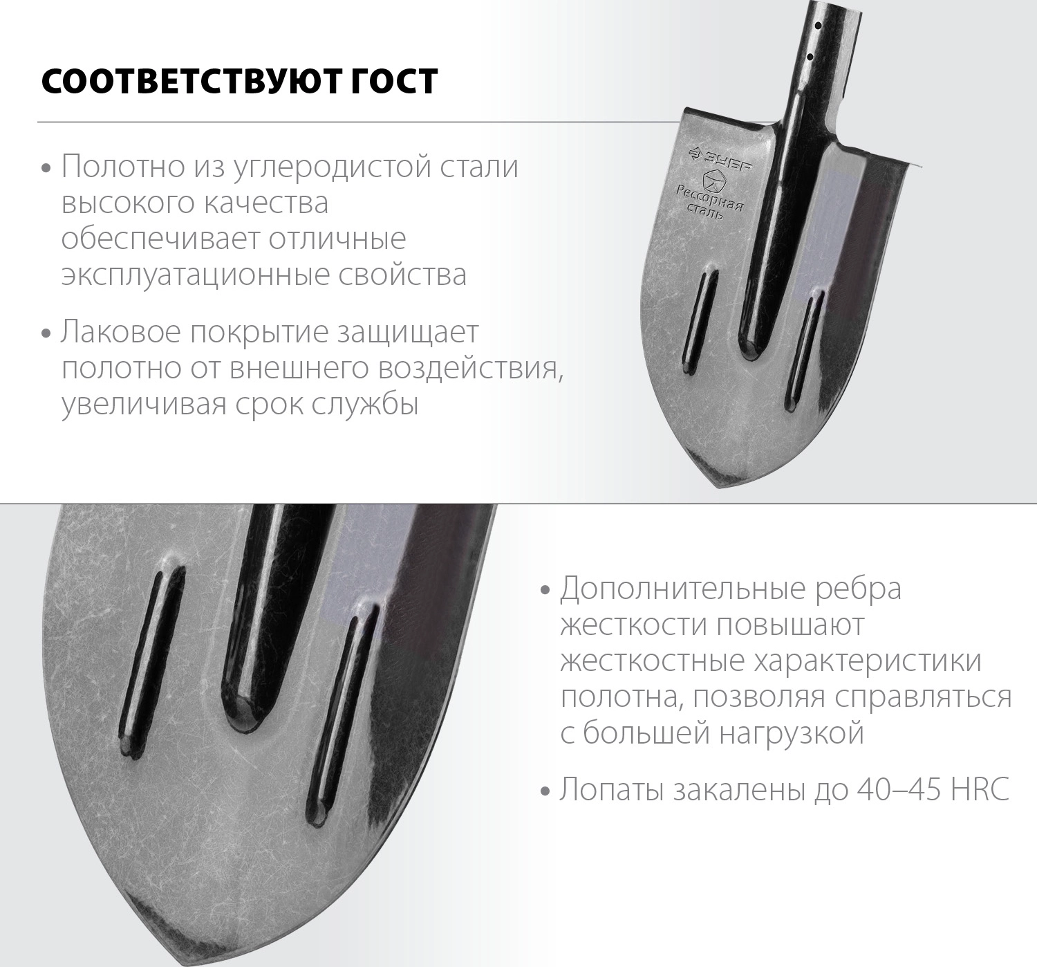 Штыковая лопата ЗУБР ПРОФИ-5 375 х 210 мм полотно рессорная сталь 1.6 мм закалено c ребрами жесткости без черенка тип ЛКО
