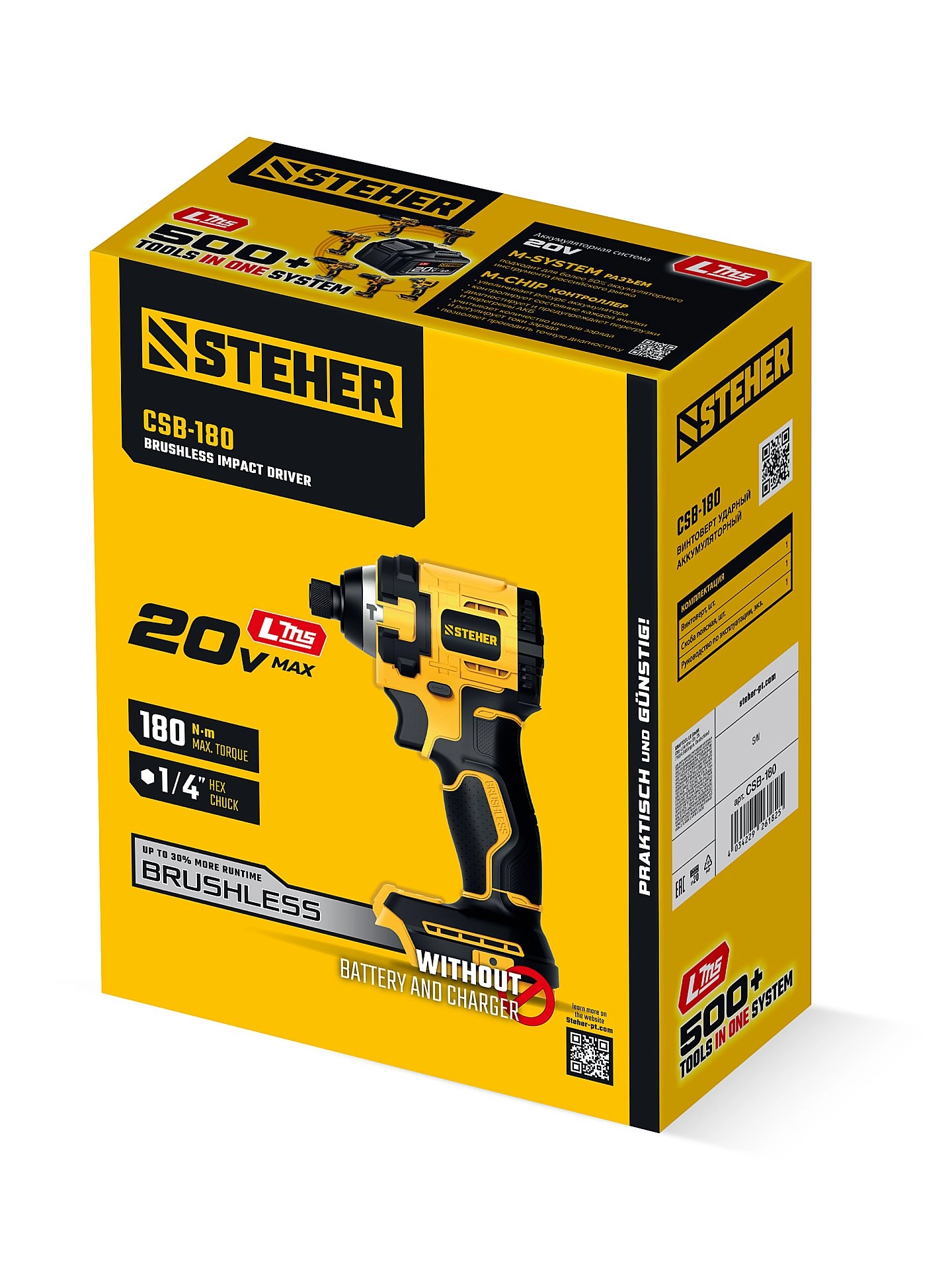 Бесщеточный ударный винтоверт STEHER 20 В, 180 Н·м, без АКБ (LMS)