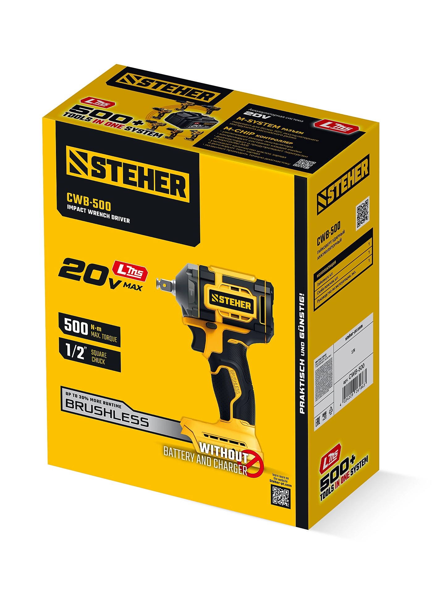 Бесщеточный ударный гайковерт STEHER 20 В, 500 Н·м, без АКБ (LMS)