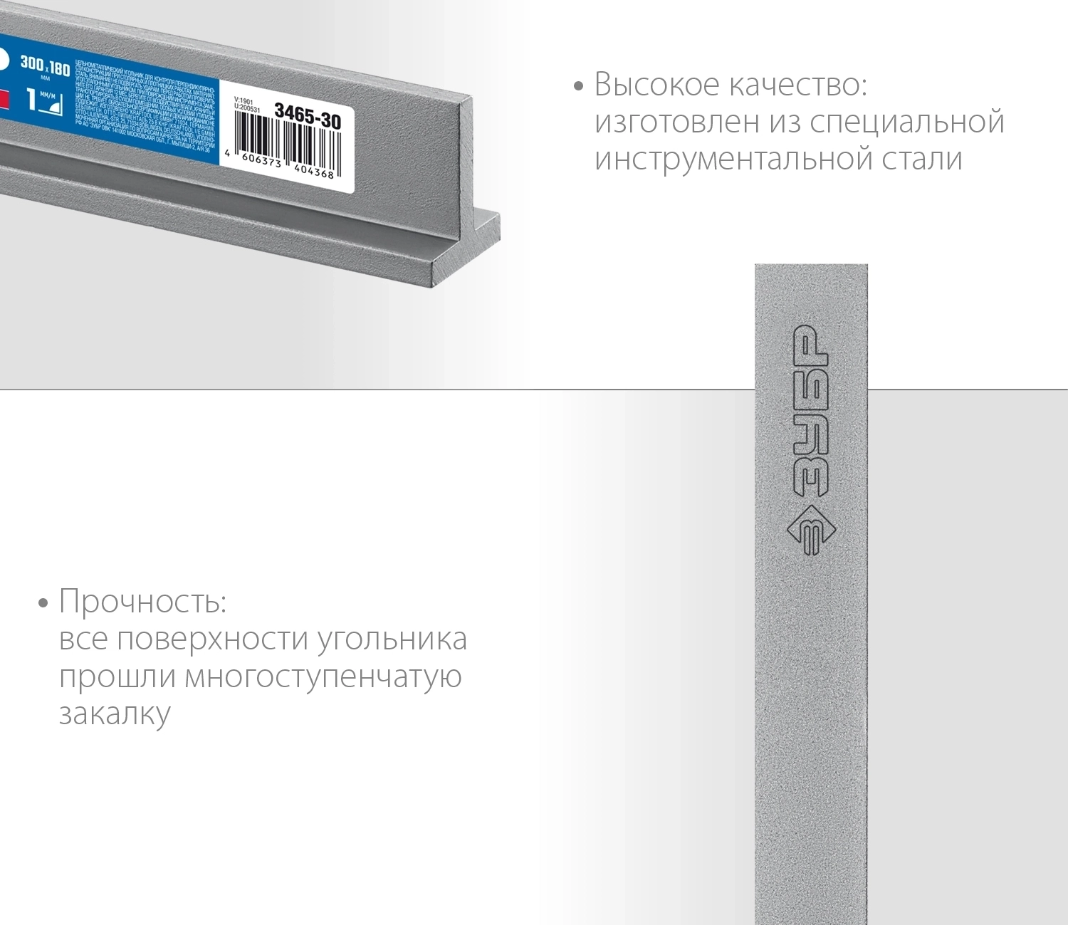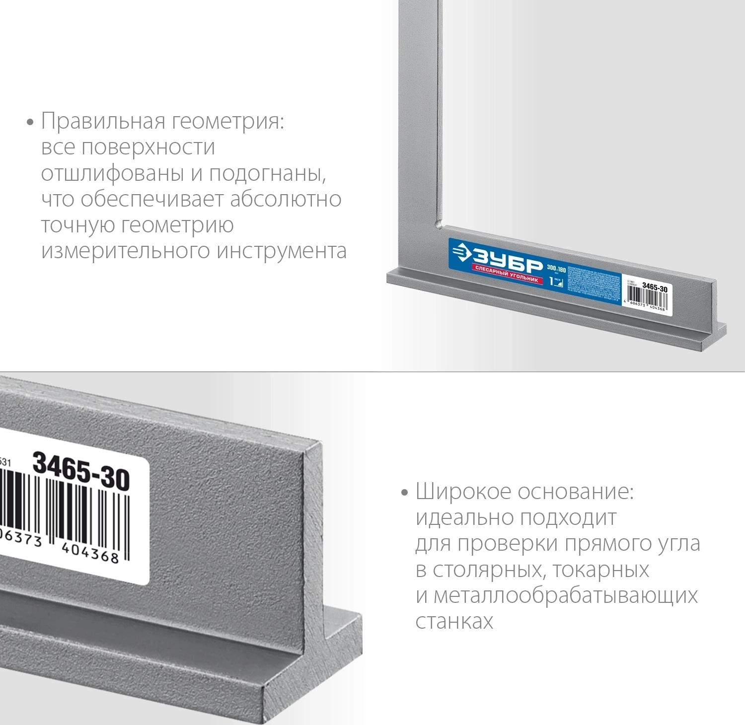 Мощный профессиональный цельнометаллический угольник со стальным полотном толщиной 5 мм и широким основанием.