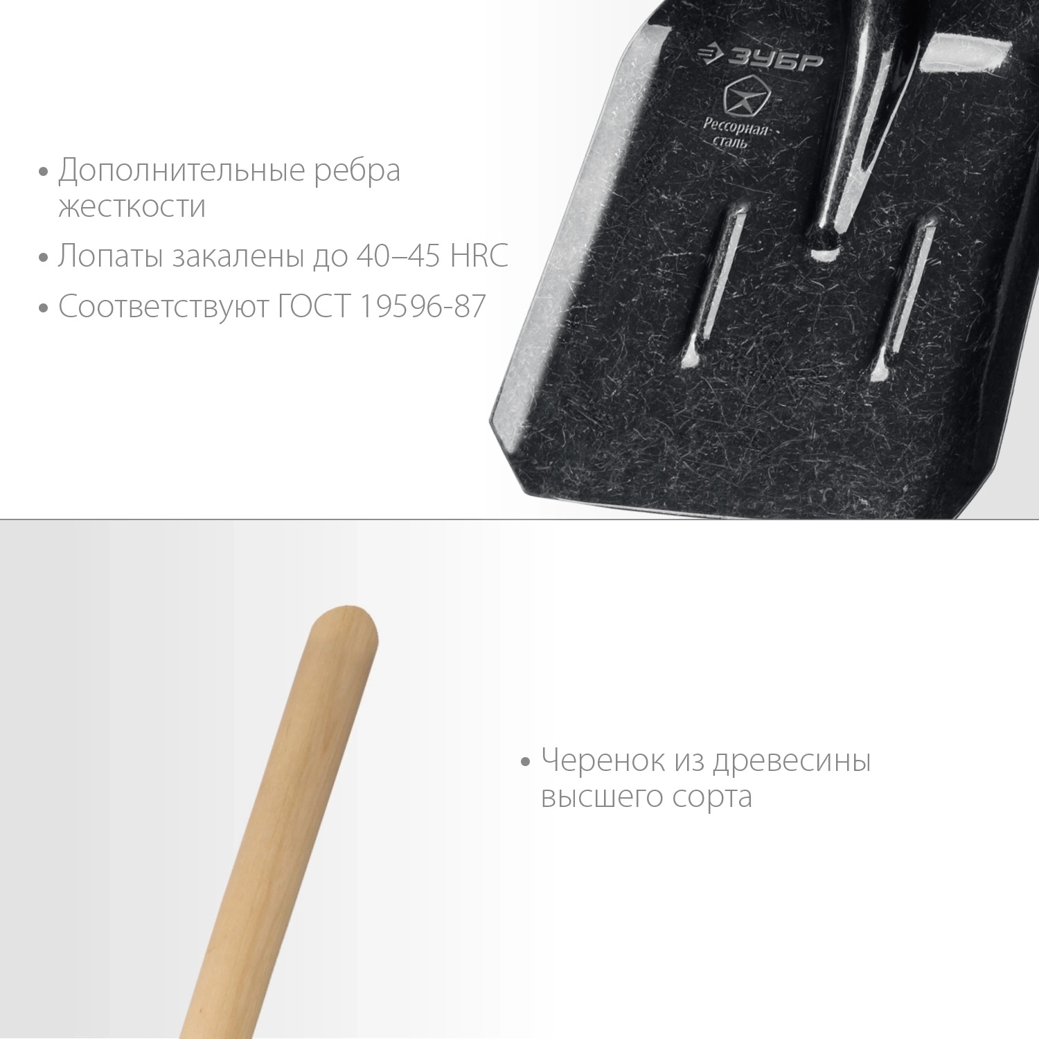Совковая лопата ЗУБР ПРОФИ-5 350х230х1450мм полотно рессор.сталь 1.6мм закалено c ребрами жестк. черенок высш.сорт тип ЛСП