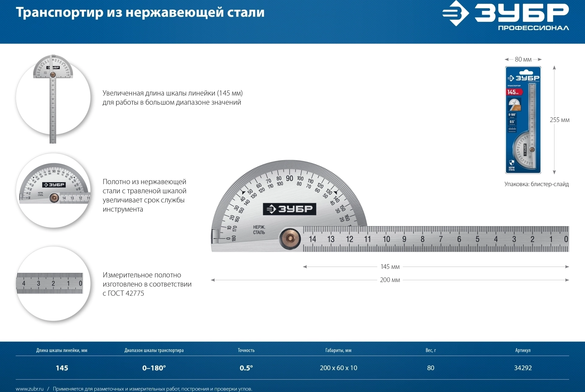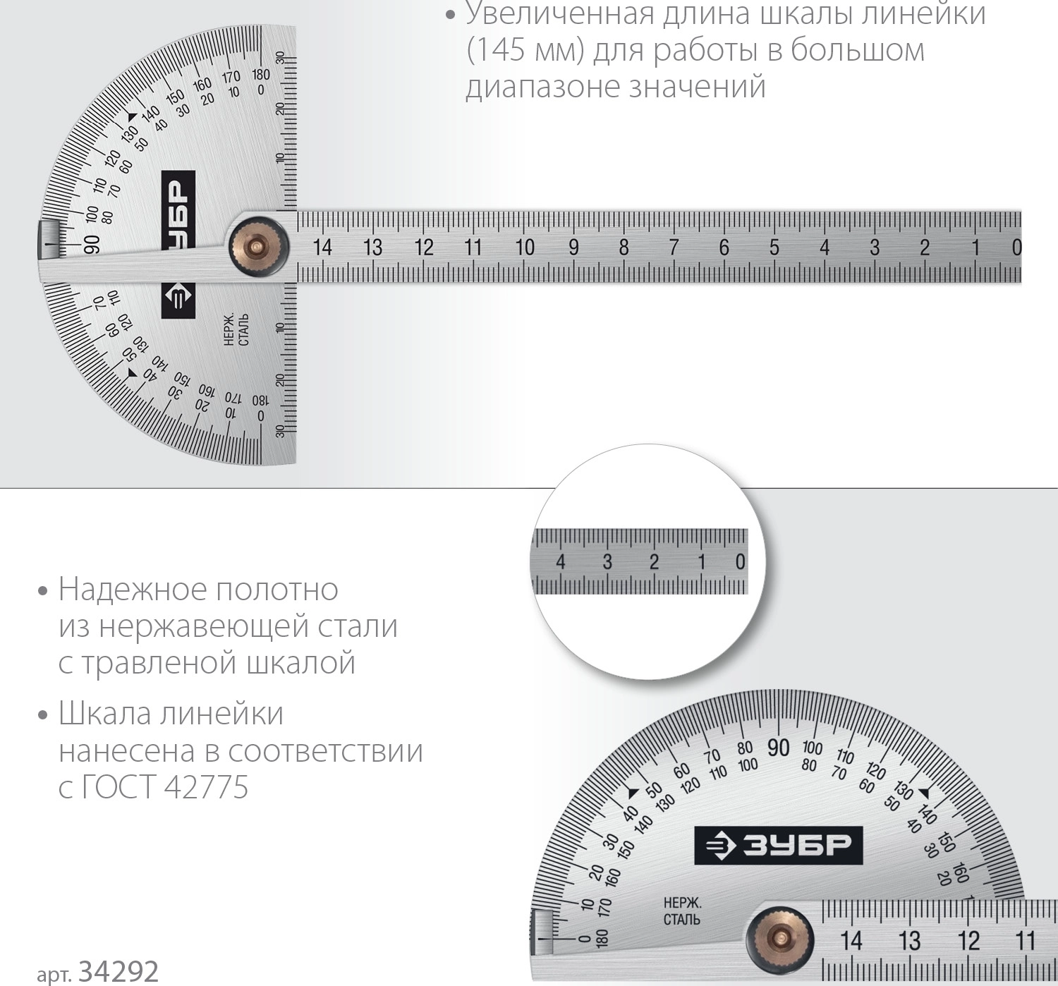 - Полотно из нержавеющей стали с травлёной шкалой увеличивает срок службы инструмента,