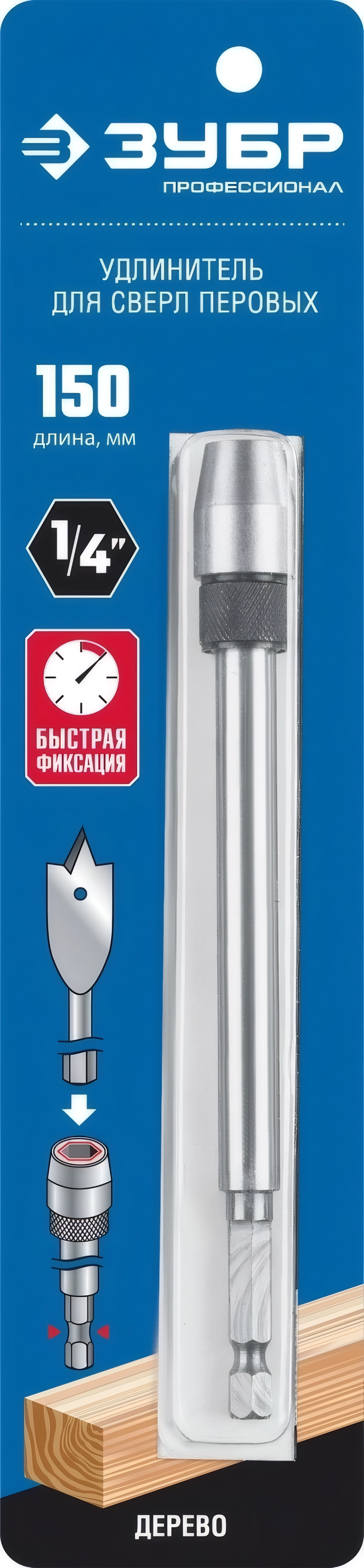 Удлинитель с быстросъемным устройством для перовых сверл ЗУБР 150 мм, хвостовик HEX 1/4″