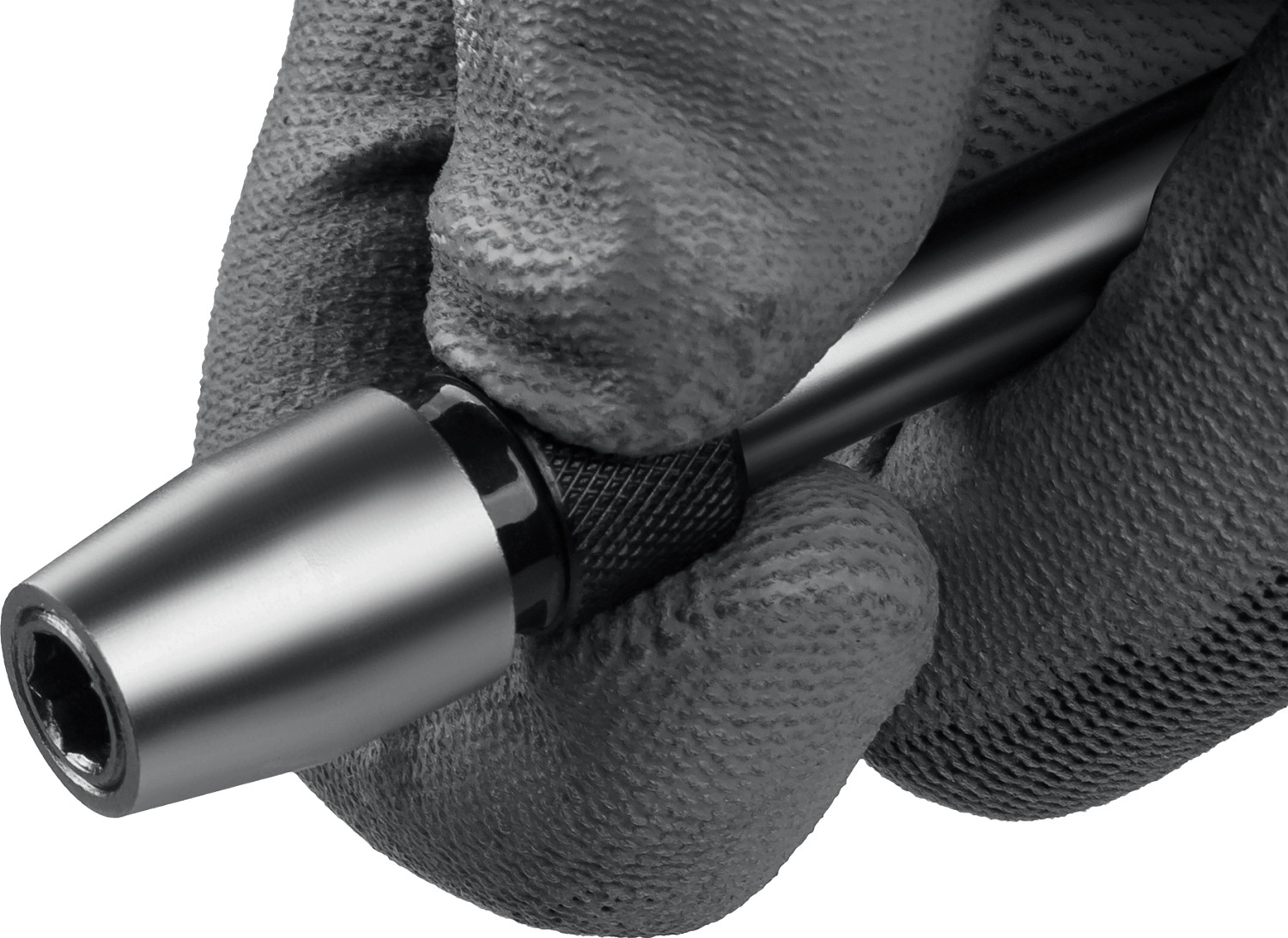 - Шестигранный хвостовик с проточкой обеспечивает быструю фиксацию удлинителя в патроне.