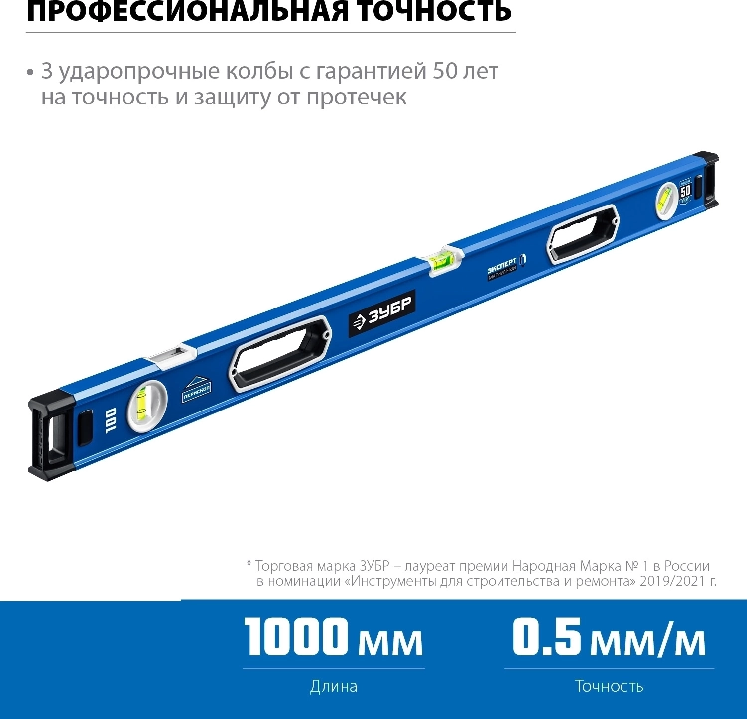 Уровень магнитный ЗУБР-М 1000 мм с зеркальным глазком