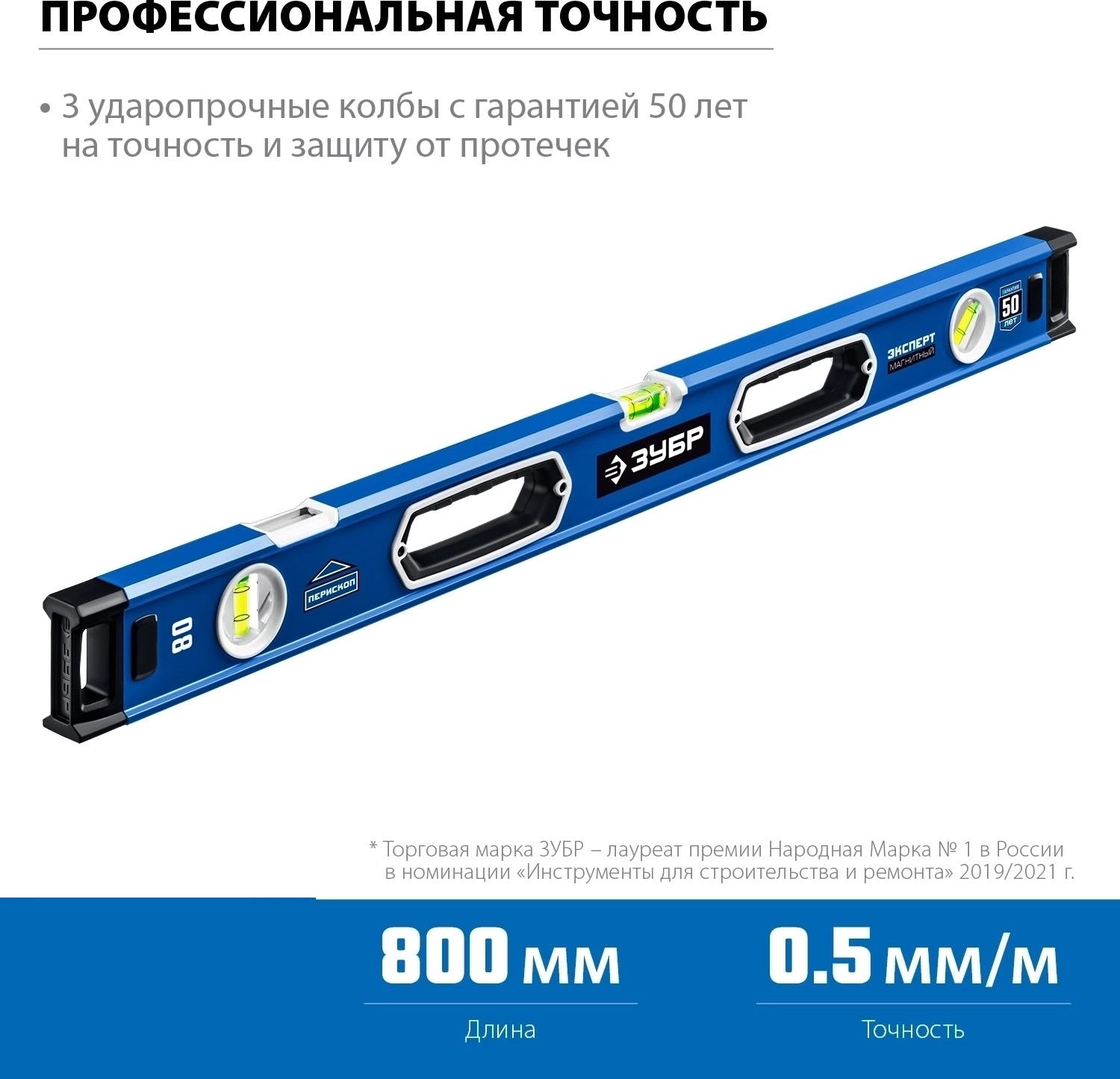 Уровень магнитный ЗУБР-М 800 мм с зеркальным глазком