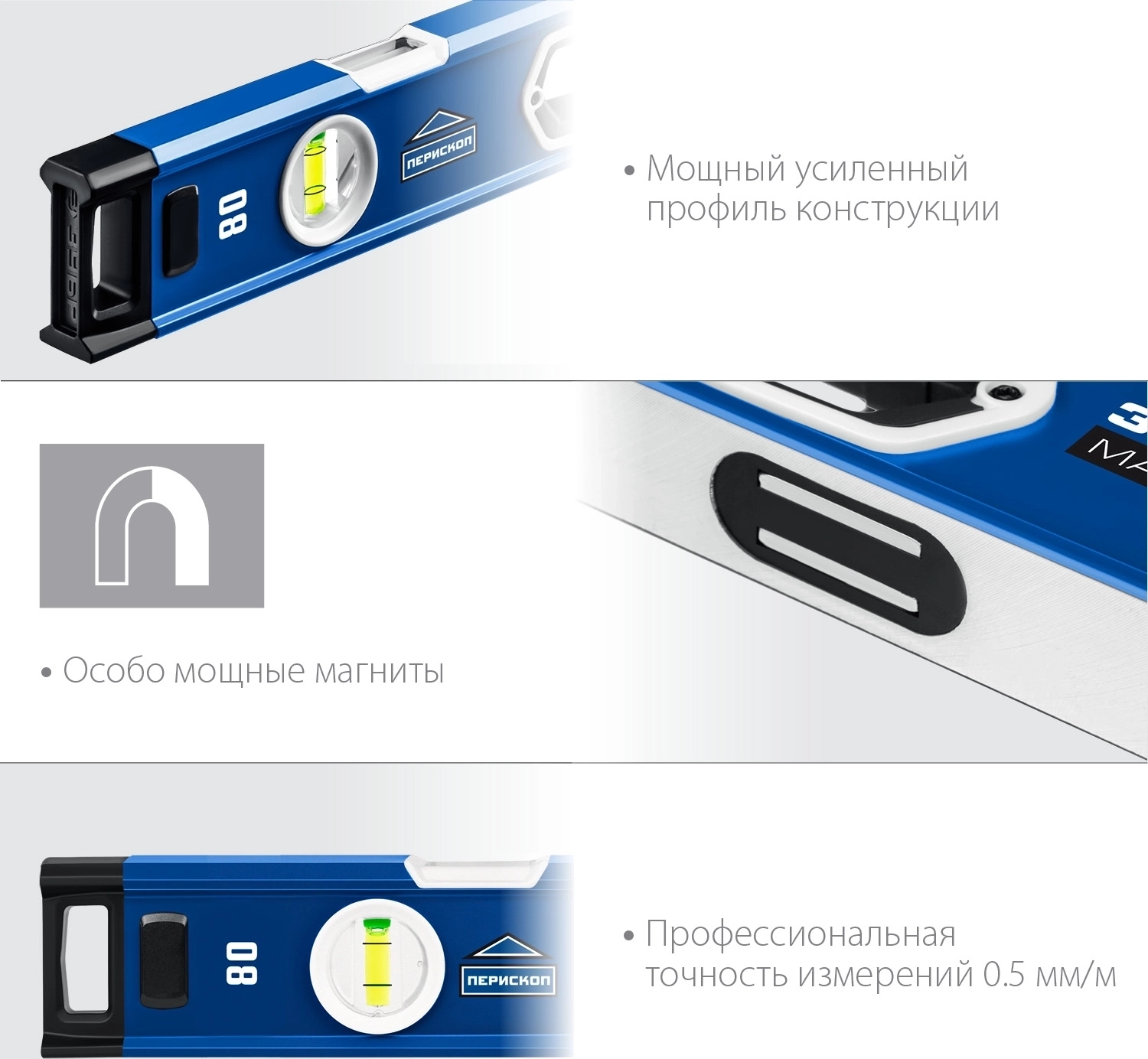 Магнитный мощный уровень с удобными рукоятками и фрезерованной базовой поверхностью