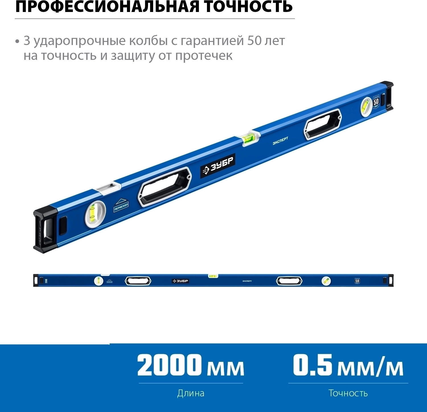 Уровень с усиленным профилем ЗУБР 2000 мм с зеркальным глазком