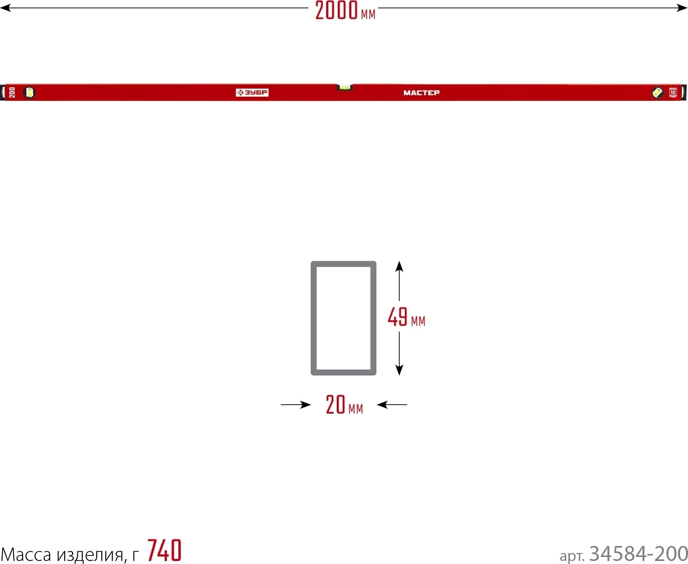 Уровень с усиленным профилем ЗУБР МАСТЕР, 2000 мм