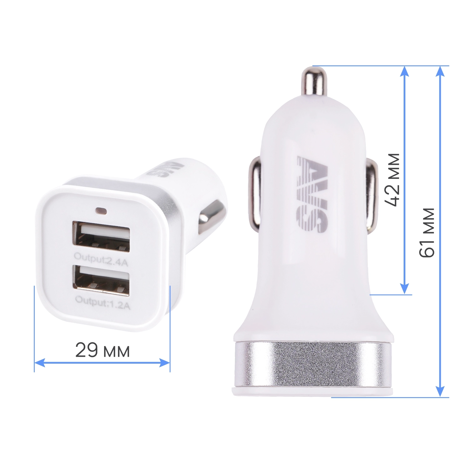 Автомобильное зарядное устройство AVS UC-323 - 2 x USB, максимальный ток 3,6 А, выходное напряжение 5 В, напряжение питания 12-24В