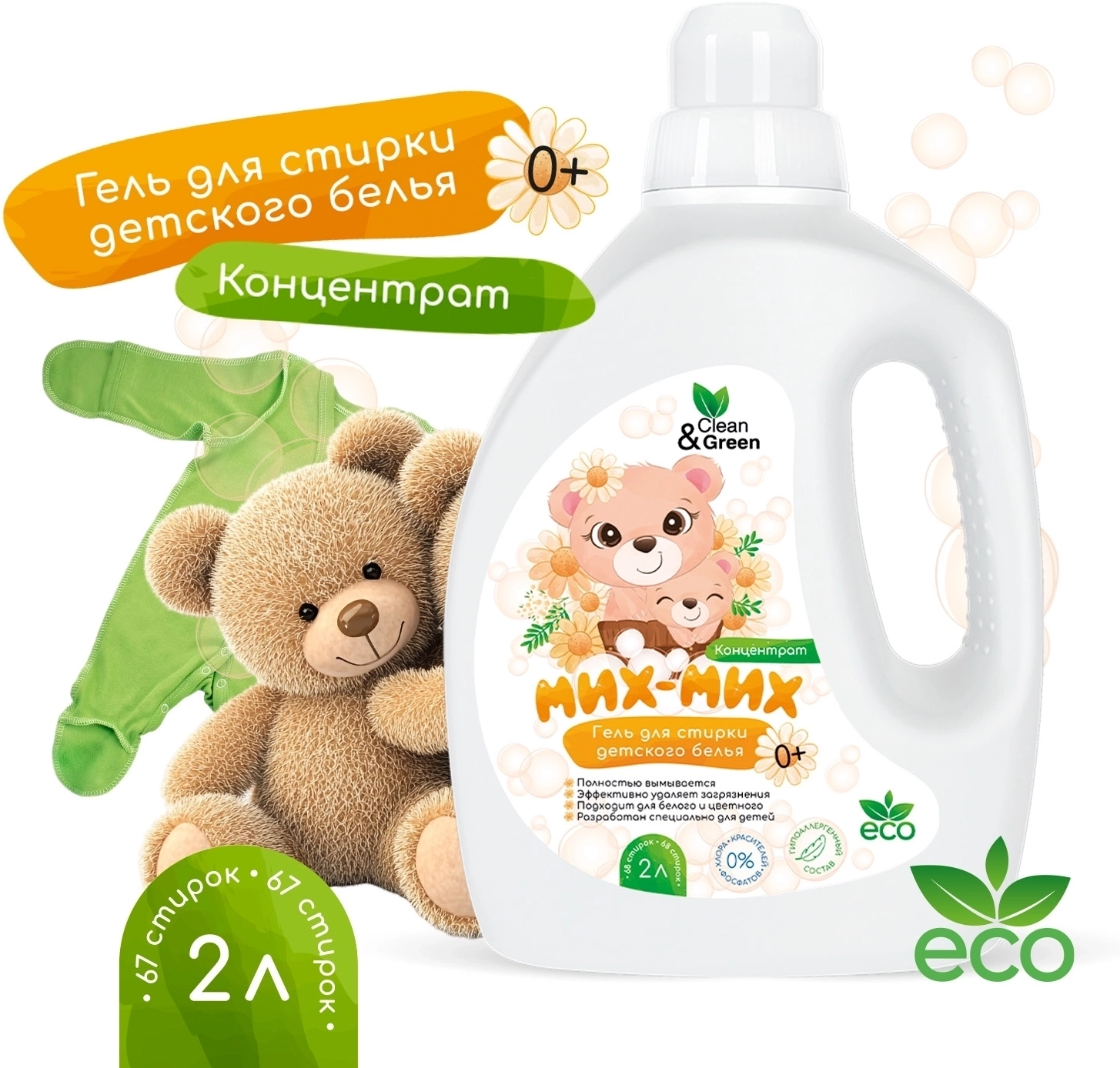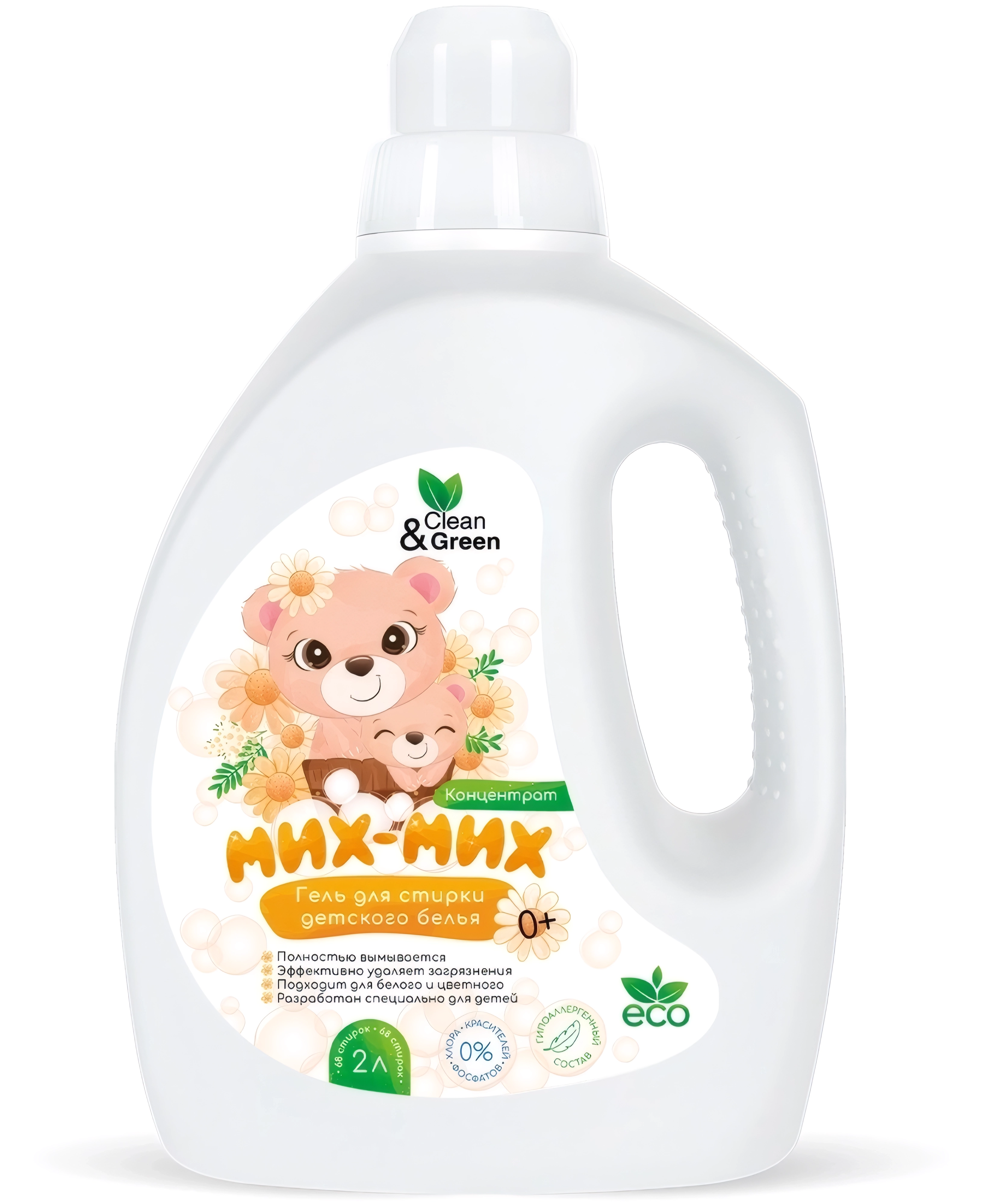 Гель концентрат для стирки детского белья Мих-Мих (гипоаллергенный) 2 л. (ПЭНД) Clean&Green CG8427