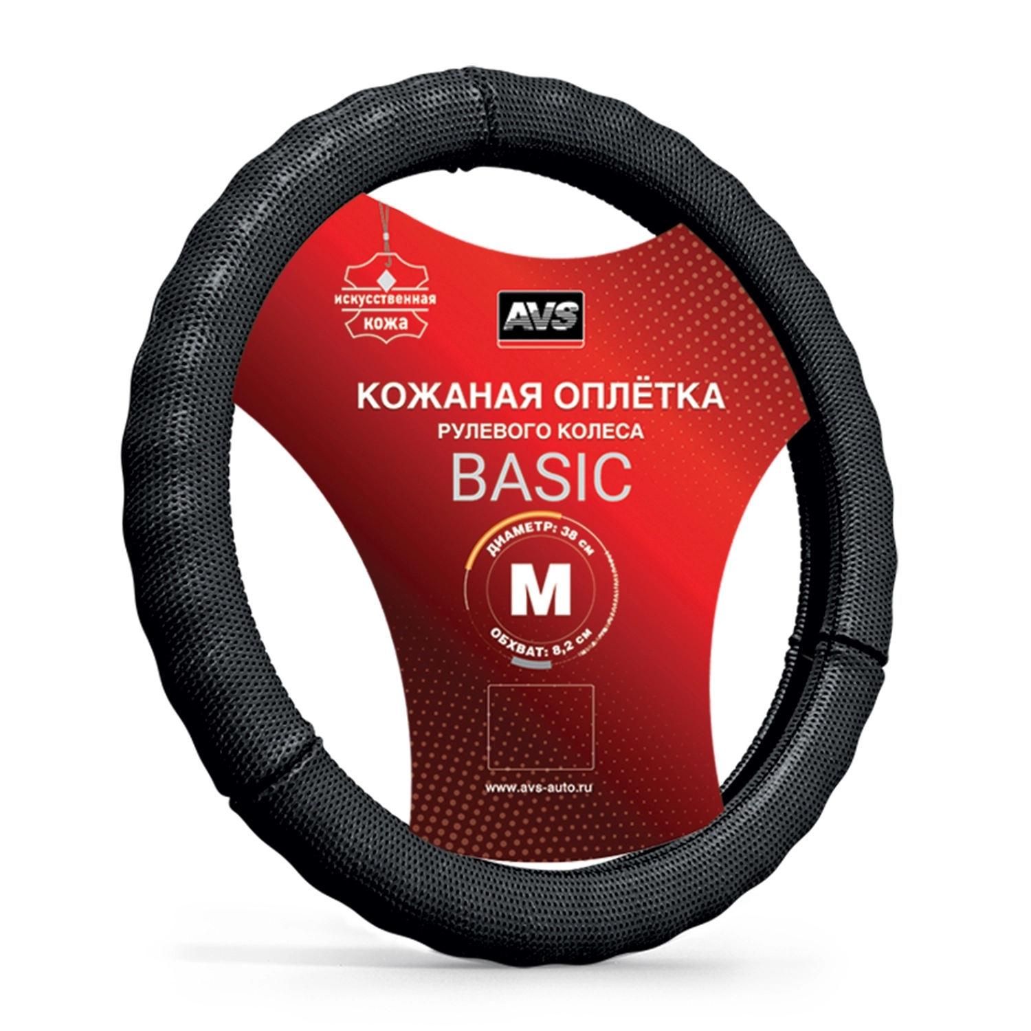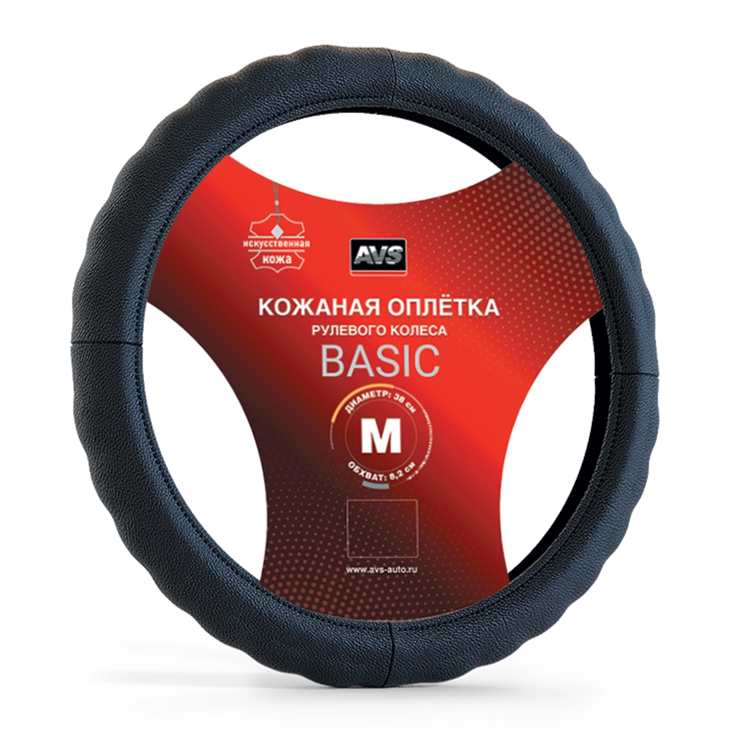 Оплетка на руль (иск. кожа) AVS IL-665M-B (размер M, черный) - Серия "Basic"