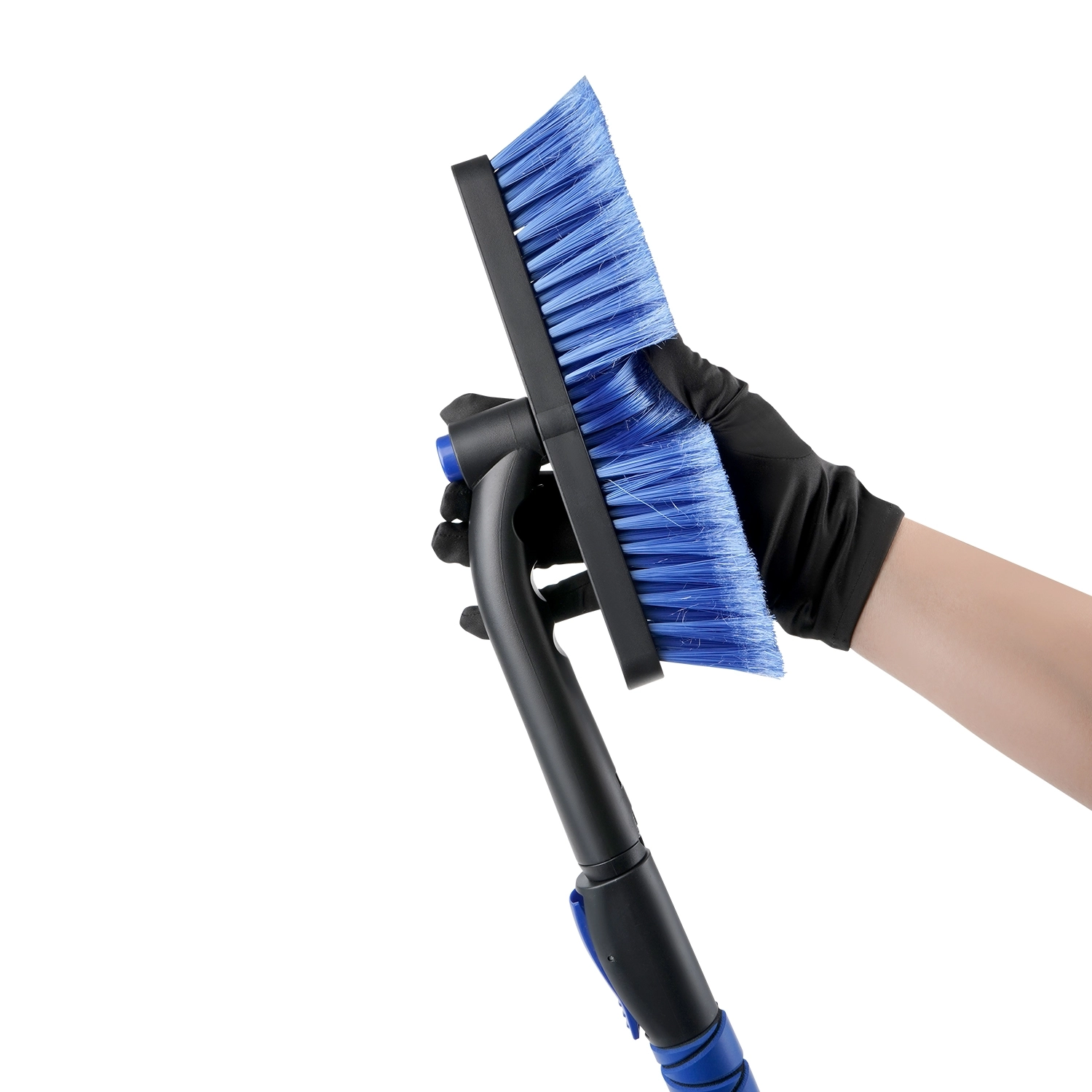 Выдвижная рукоятка позволит легко добраться до труднодоступных мест. Насадка щетки поворотная. Мягкий, прочный ворс не повредит покрытие кузова автомобиля.