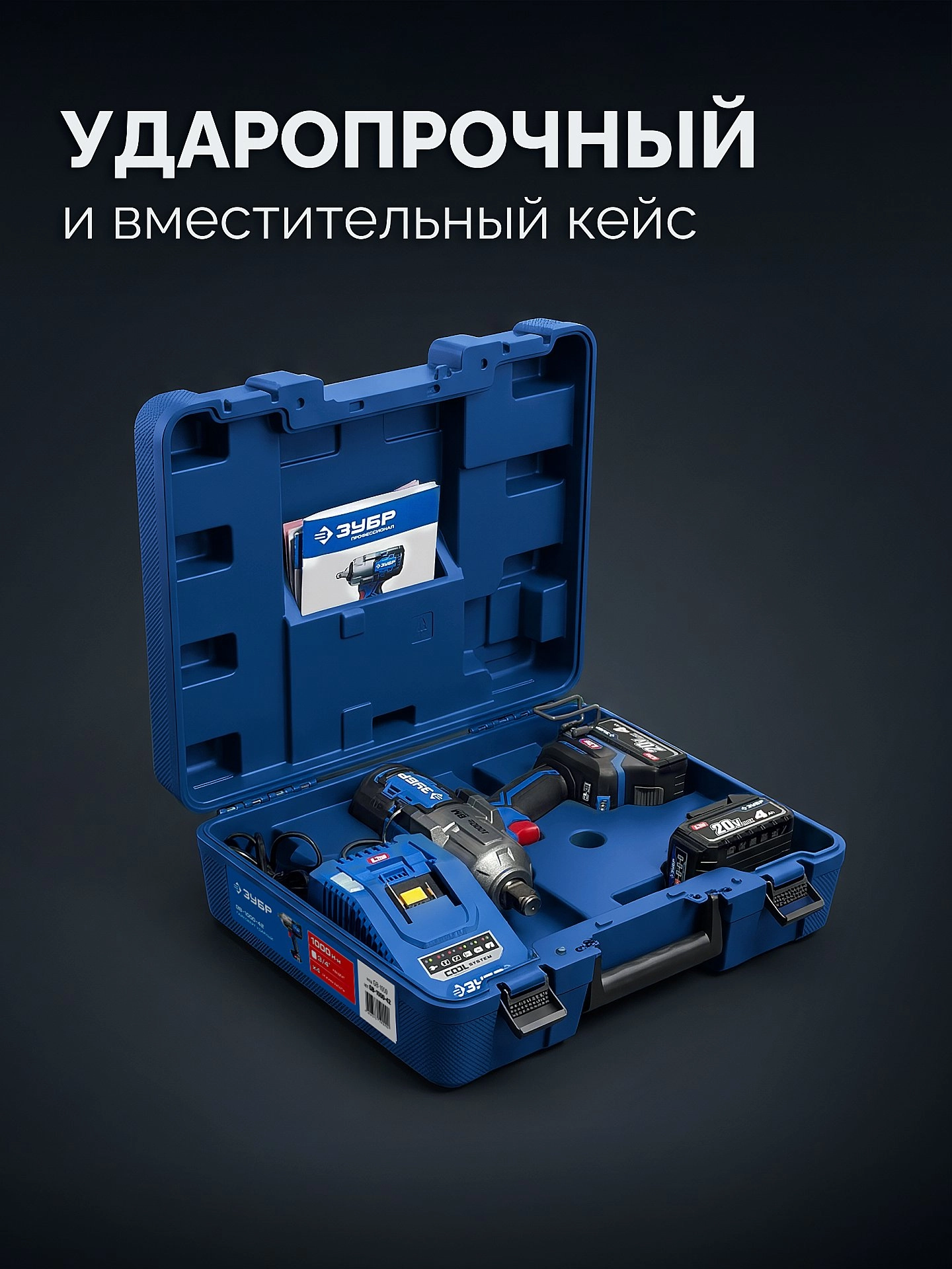 ПРОФЕССИОНАЛ 20 В, 1000 Н·м, 2 АКБ LMS (4 А·ч), бесщеточный ударный гайковерт, кейс арт. 121989