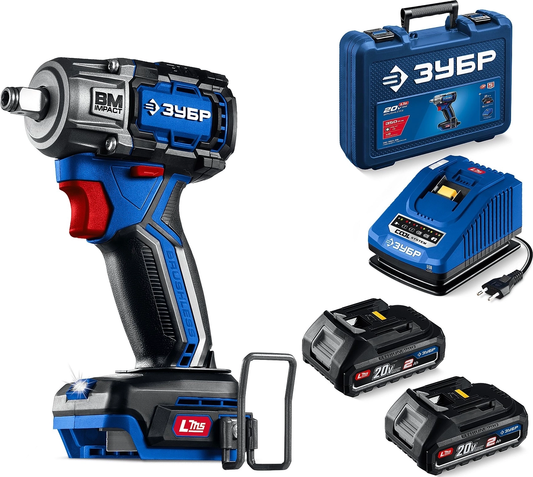 ПРОФЕССИОНАЛ 20 В, 350 Н·м, 2 АКБ LMS (2 А·ч), бесщеточный ударный гайковерт, кейс арт. 121479