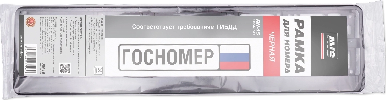 Рамка под номерной знак (чёрная) AVS RN-15