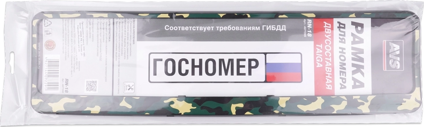 Рамка под номерной знак "Taiga" двусоставная (камуфляж) AVS RN-18