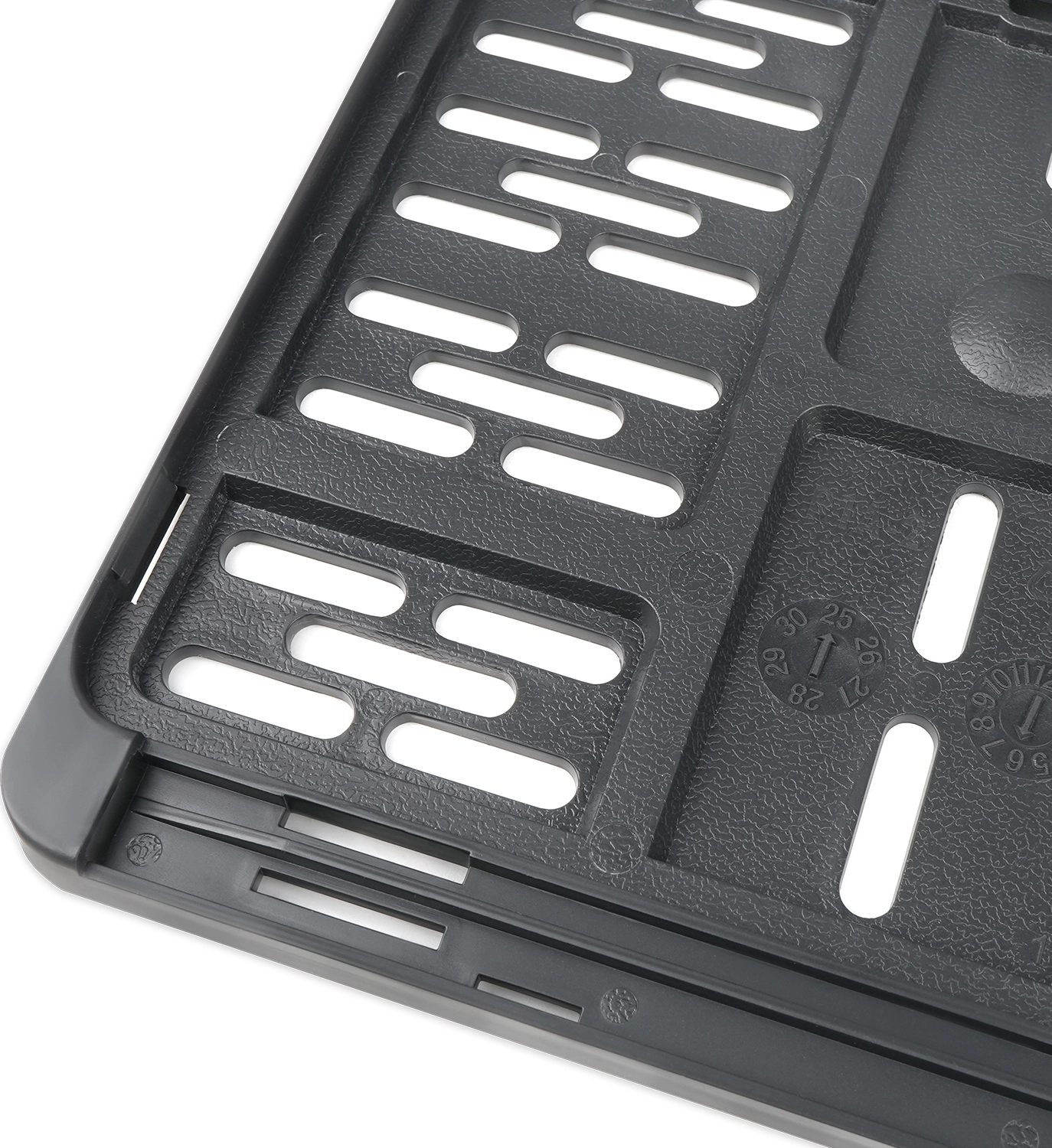 Данная конструкция обладает надежным креплением номерного знака по всему контуру.