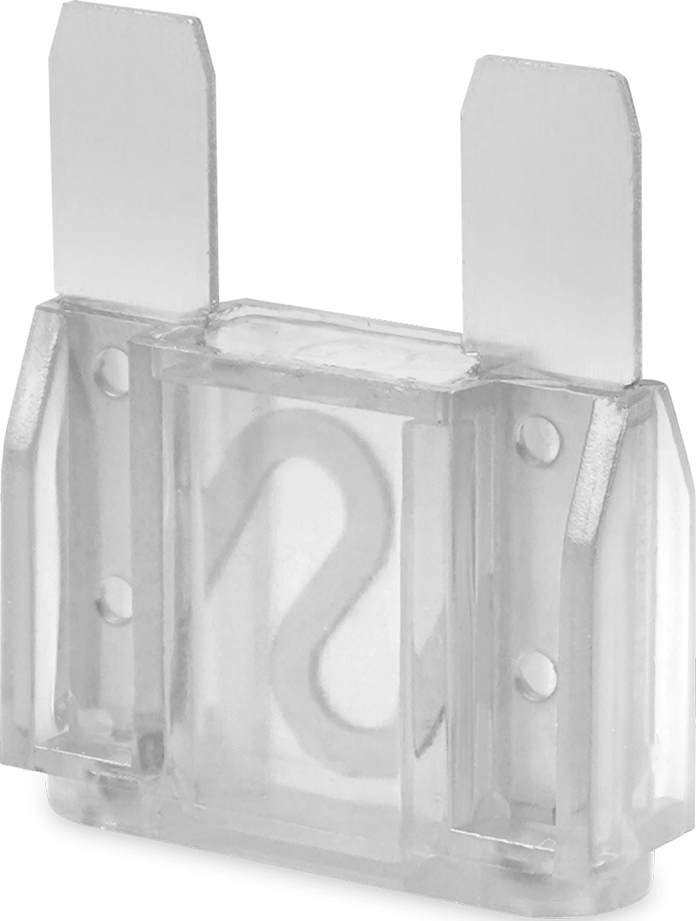Корпус предохранителя выполнен из прозрачного пластика, а элемент - из цинкового сплава.