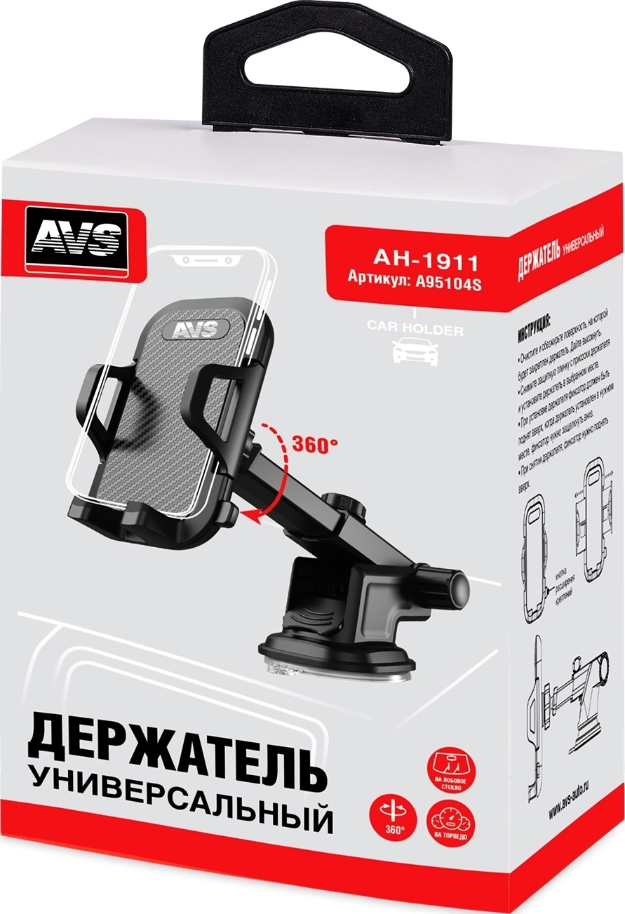 Держатель для смартфонов универсальный AVS AH-1911 удобен и прост в использовании. Предназначен для устройств шириной от 54 до 100 мм. Конструкция всех подвижных частей позволяет закрепить держатель на разном расстоянии от стекла и настроить угол наклона. Легко и надёжно крепится к лобовому стеклу или приборной панели при помощи вакуумной присоски.