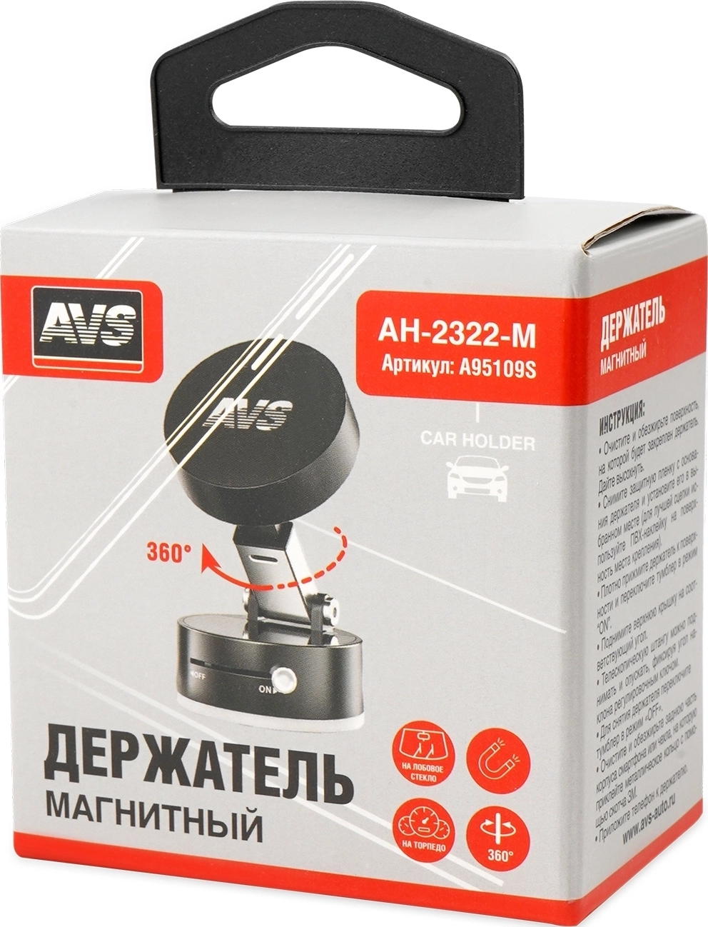 Держатель магнитный на приборную панель AVS AH-2322-M для сотовых телефонов предназначен для безопасной и быстрой фиксации мобильных устройств. Позволяет точно настроить положение устройства для комфортного использования. В комплект входят два самоклеящихся металлических кольца, ключ регулировки кронштейна, чистящая салфетка и ПВХ-наклейка для любых поверхностей. Легко и надёжно крепится к лобовому стеклу или приборной панели при помощи вакуумной присоски.