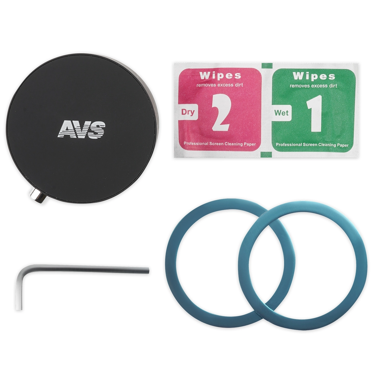 Комплектация: держатель (1 шт.), металлическое кольцо на скотче 3M (2 шт.), ключ регулировки кронштейна (1 шт.), чистящая салфетка (1 шт.), ПВХ-наклейка для любых поверхностей (1 шт.)