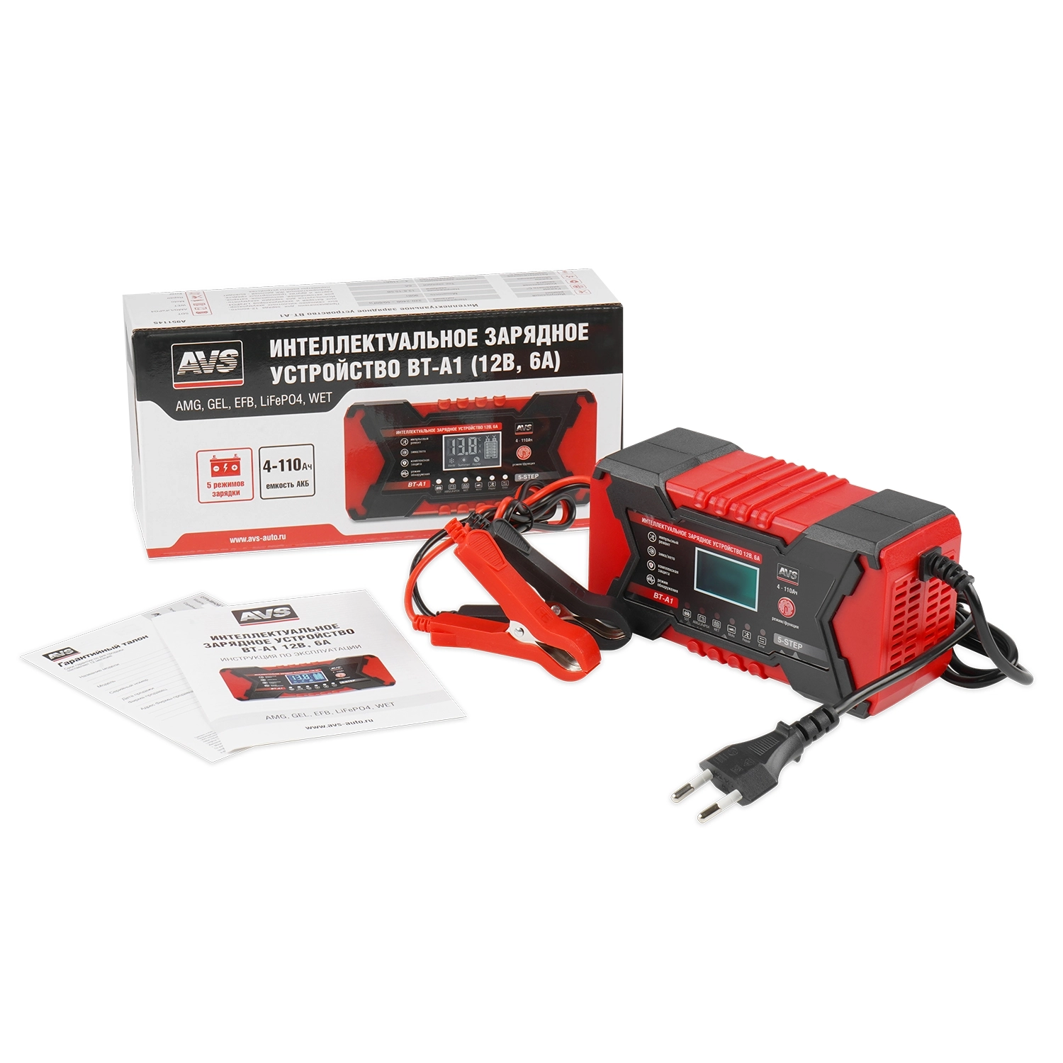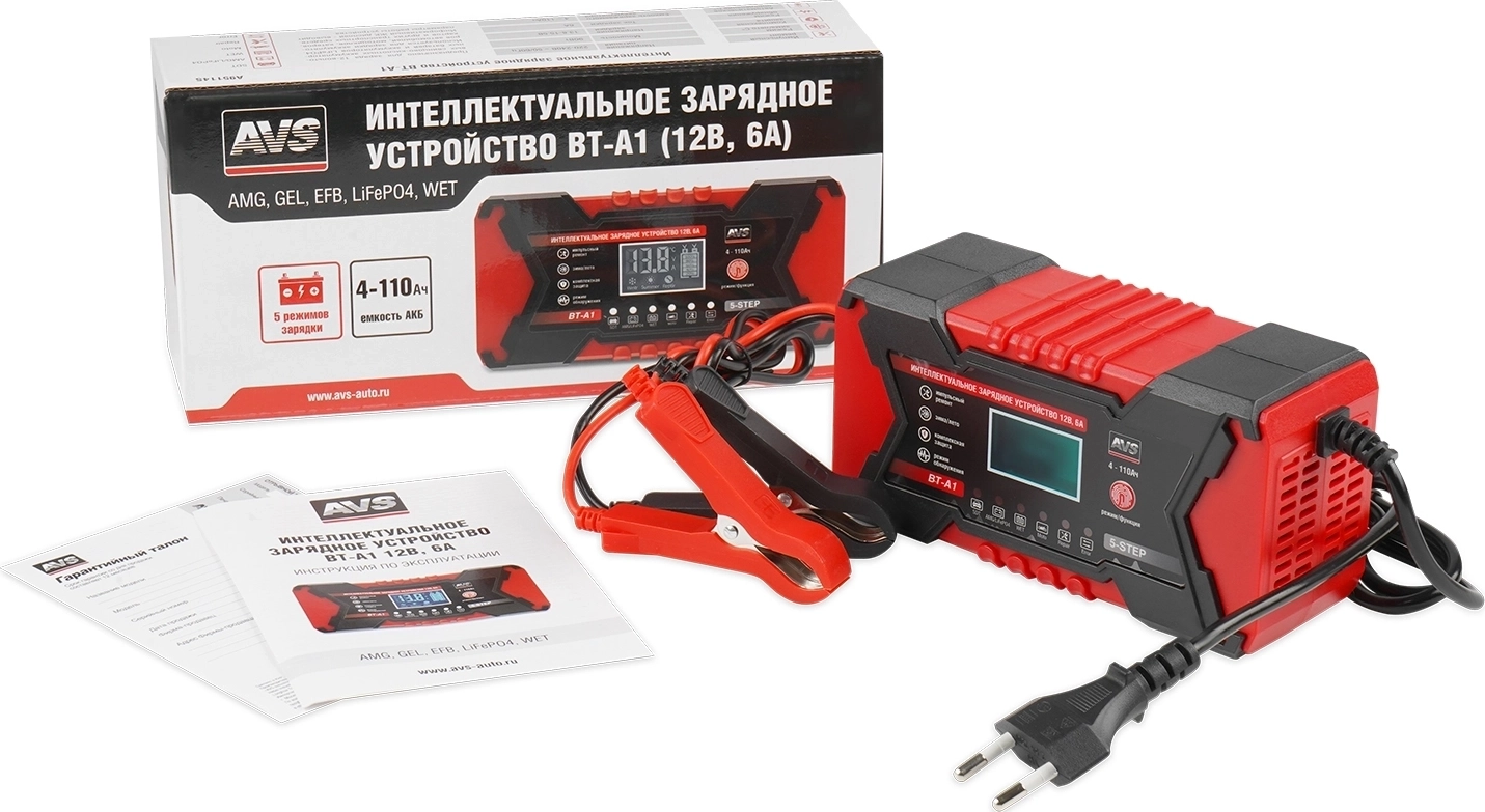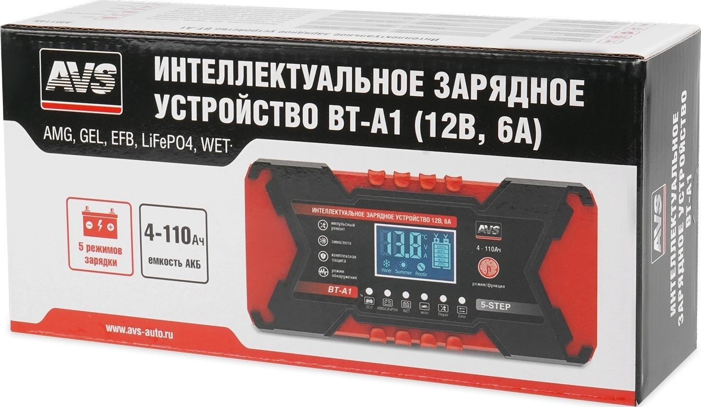 Интеллектуальное зарядное устройство для автомобильного аккумулятора AVS BT-A1 (6A) 12V