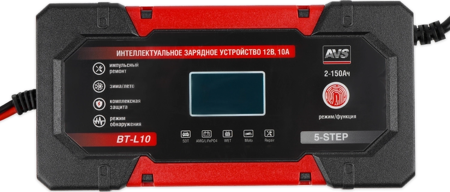Интеллектуальное зарядное устройство для автомобильного аккумулятора AVS BT-L10 (10A) 12V
