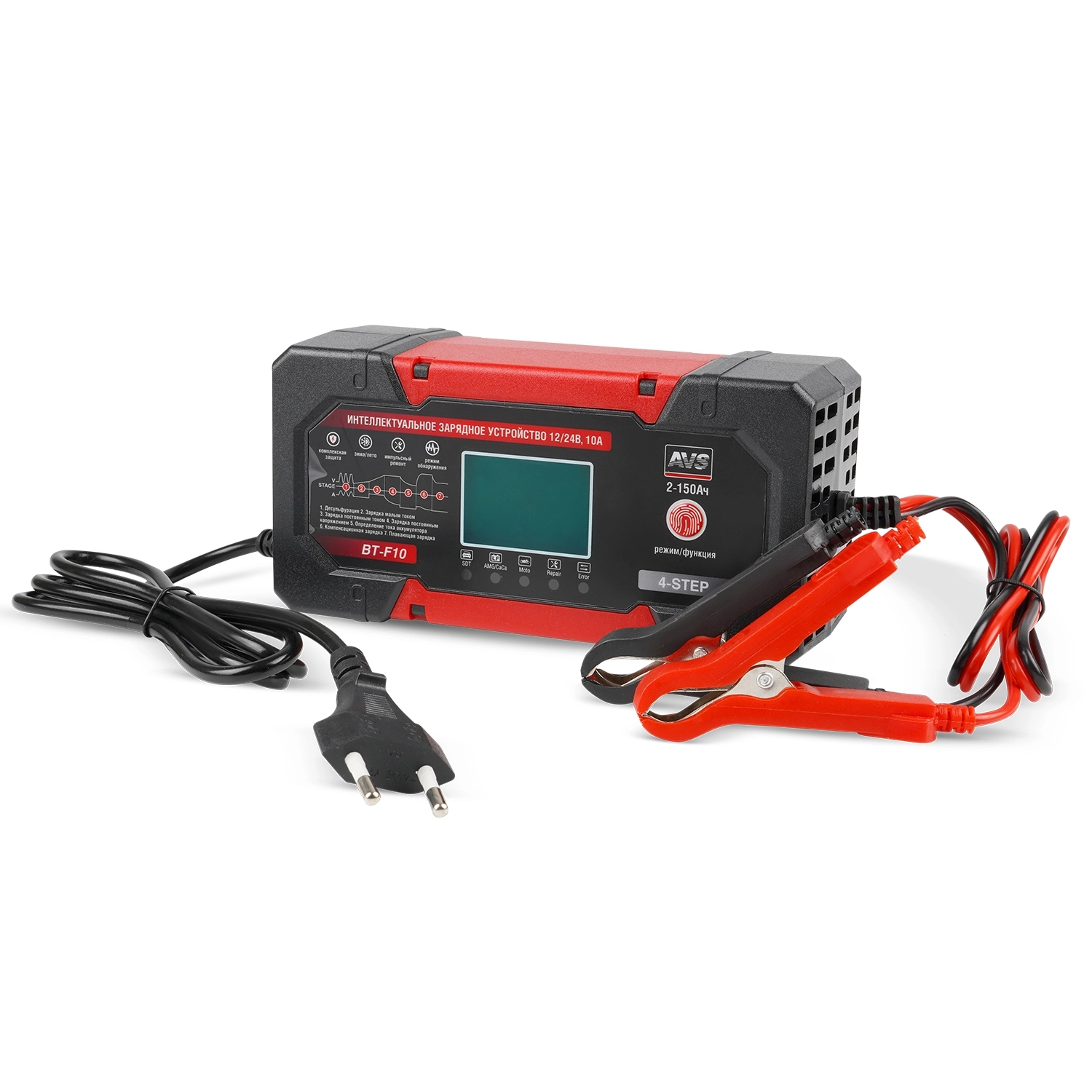 Интеллектуальное зарядное устройство для автомобильного аккумулятора AVS BT-F10 (10A) 12/24V