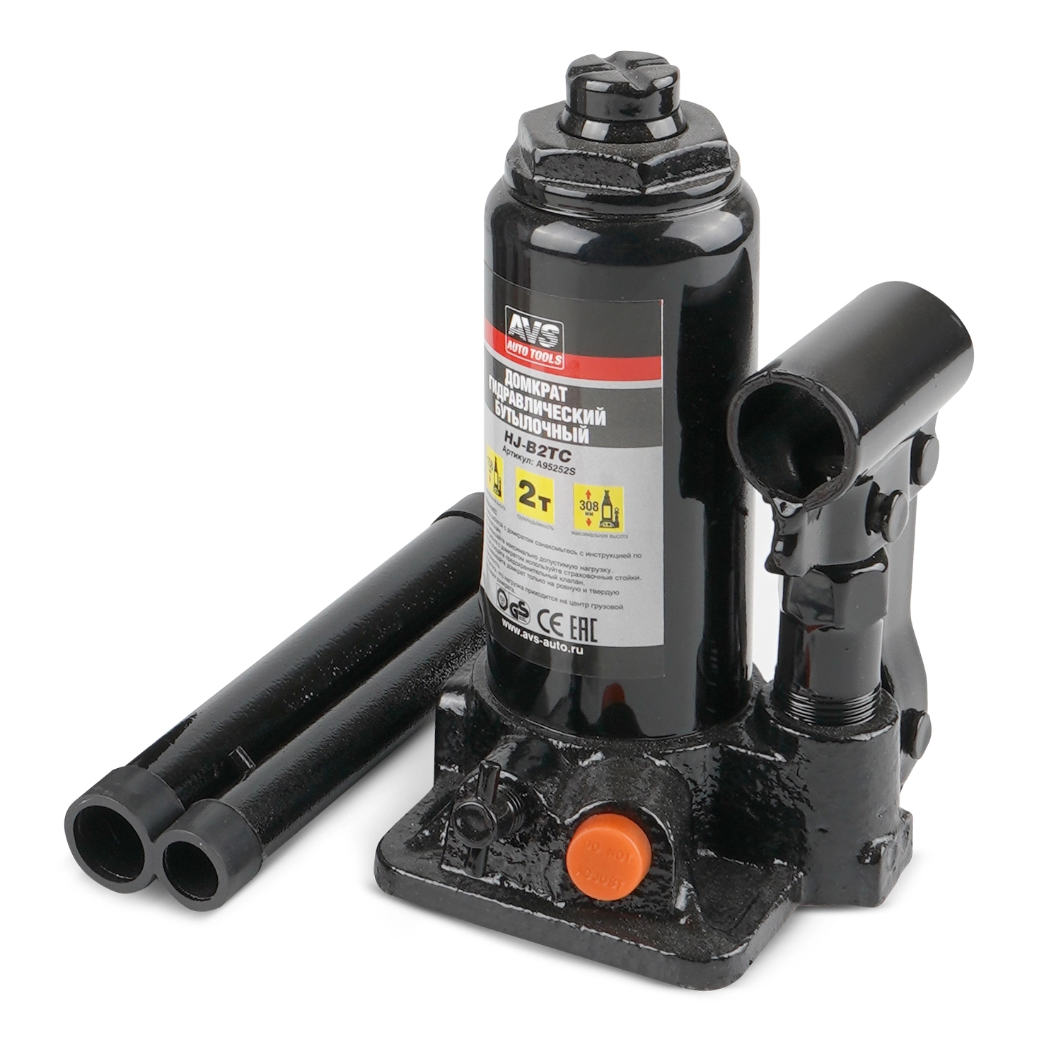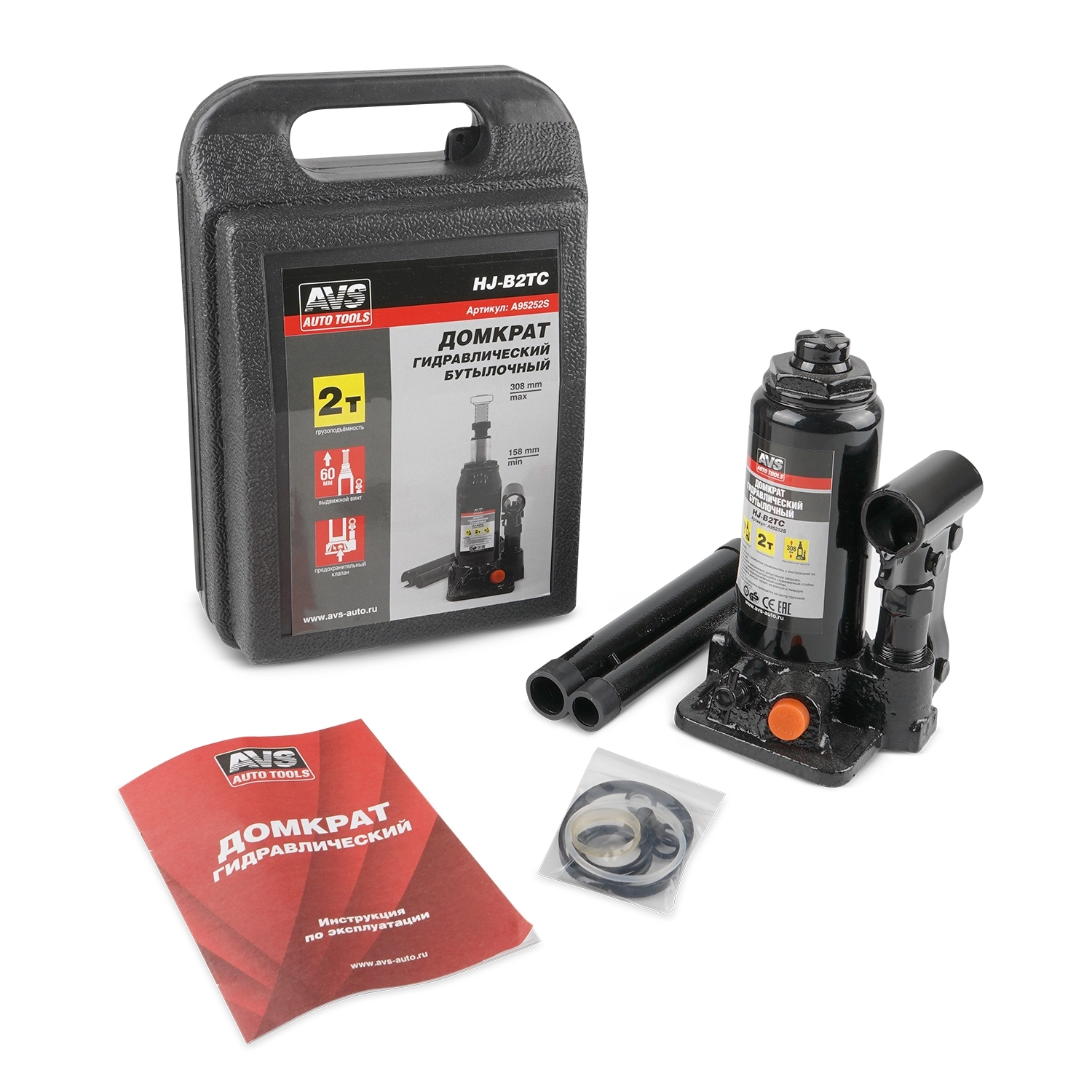 Домкрат гидравлический AVS HJ-B2TC, 2т, 158-308мм с клапаном, в кейсе (ремкомплект)