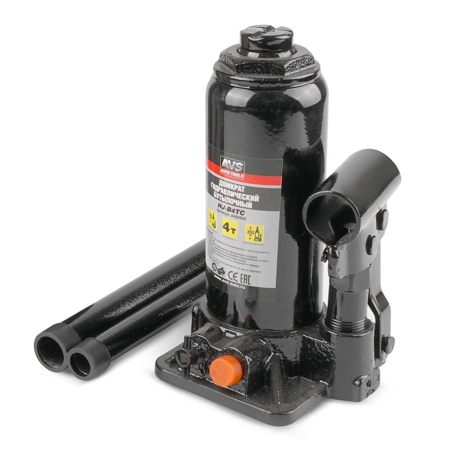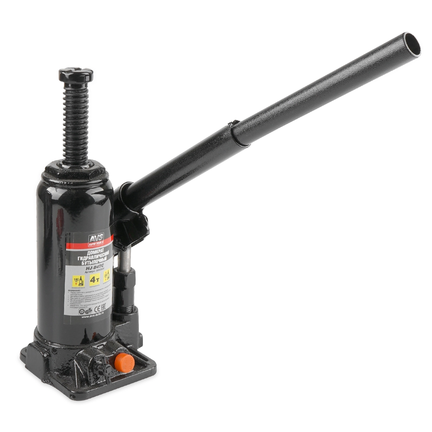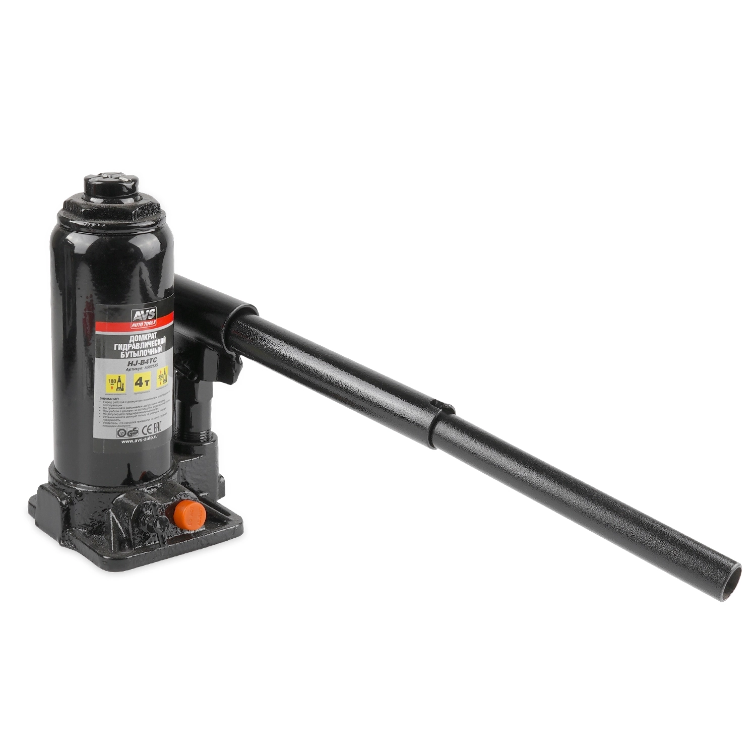 Домкрат гидравлический AVS HJ-B4TC, 4т, 180-350мм. с клапаном, в кейсе (ремкомплект)