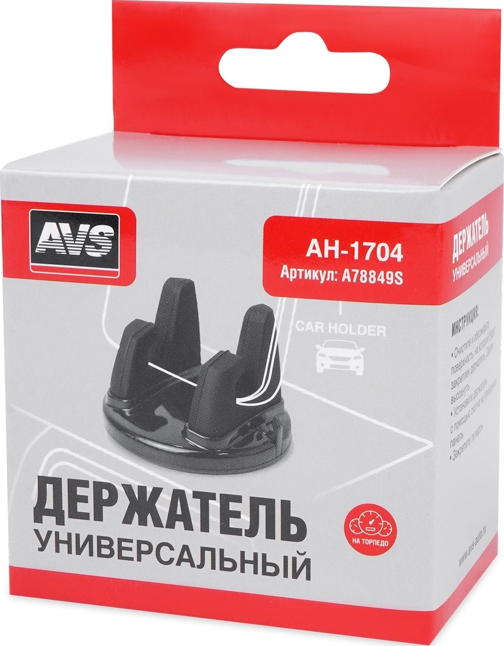 Автомобильный держатель AVS AH-1704 - для смартфонов шириной от 4 до 12 см., установка на приборную панель, крепление при помощи основания с двухсторонним скотчем