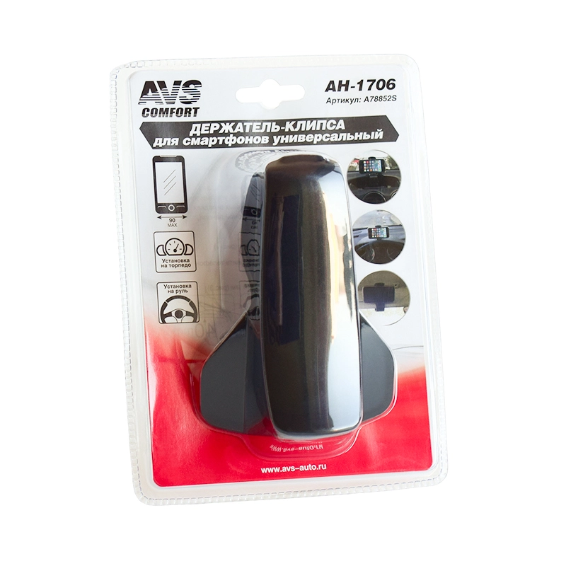 Автомобильный держатель AVS AH-1706- для смартфонов шириной до 9 см., установка на приборную панель