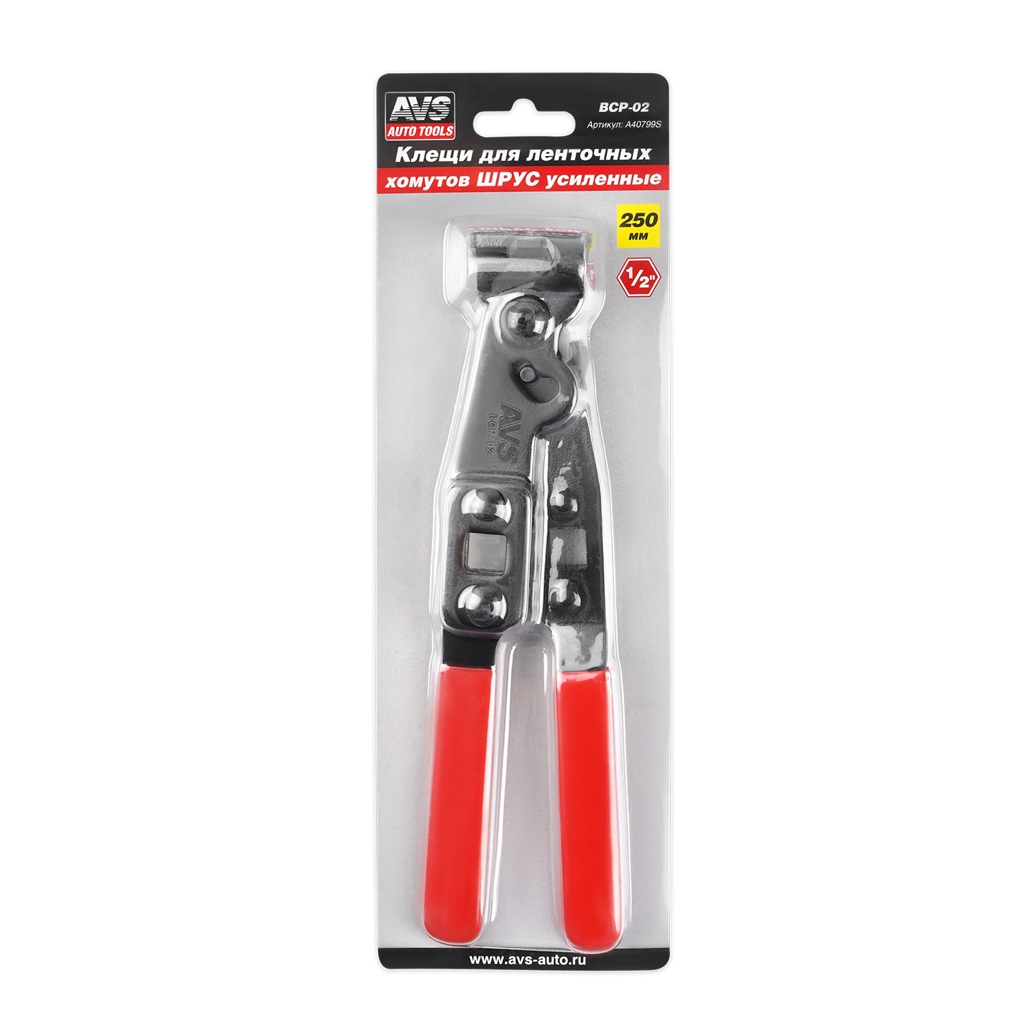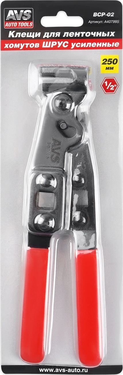 Клещи для ленточных хомутов ШРУС усиленные AVS BCP-02 - длина 250 мм, обрезиненные рукояти