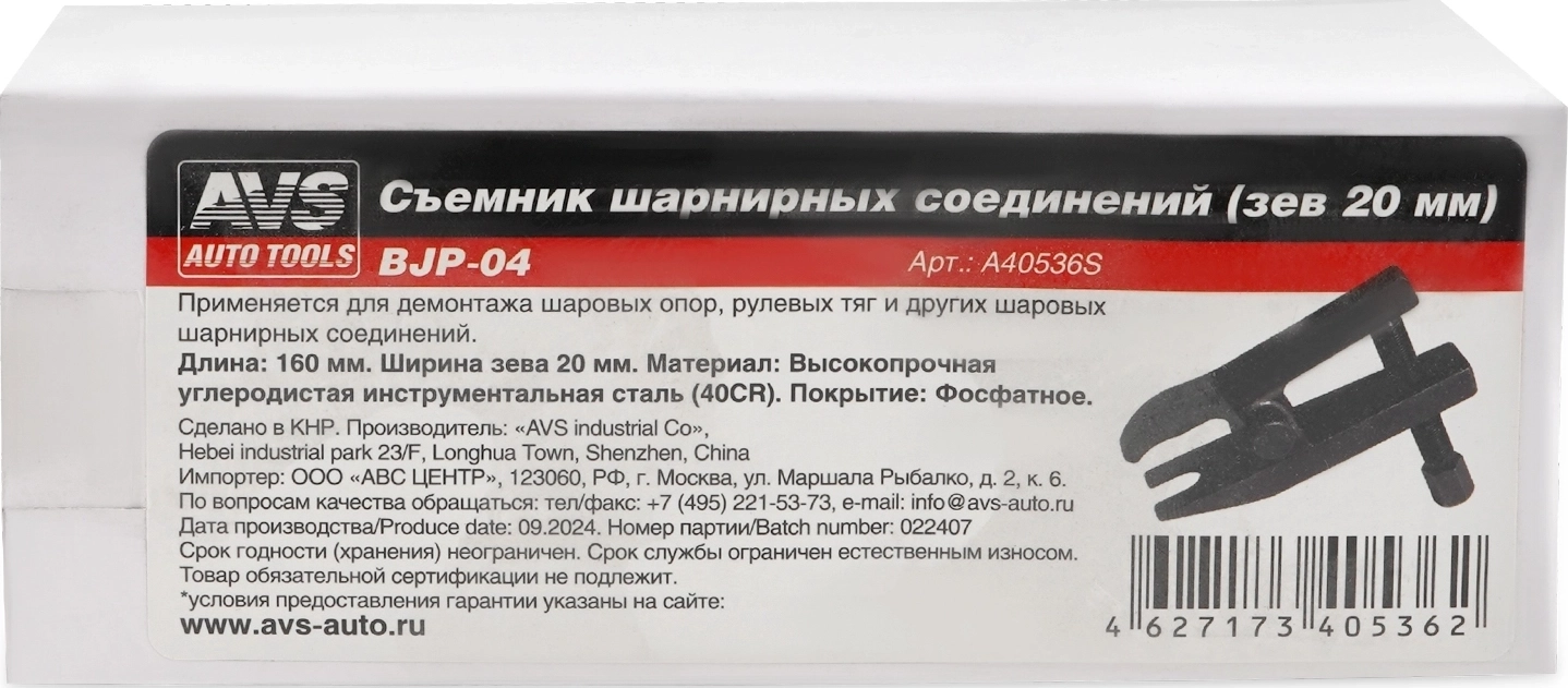 Применяется для демонтажа шаровых опор, рулевых тяг и других шаровых шарнирных соединений. Ширина зева 20 мм.
