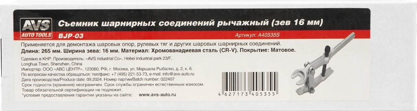Применяется для демонтажа шаровых опор, рулевых тяг и других шаровых шарнирных соединений. Ширина зева 16 мм.