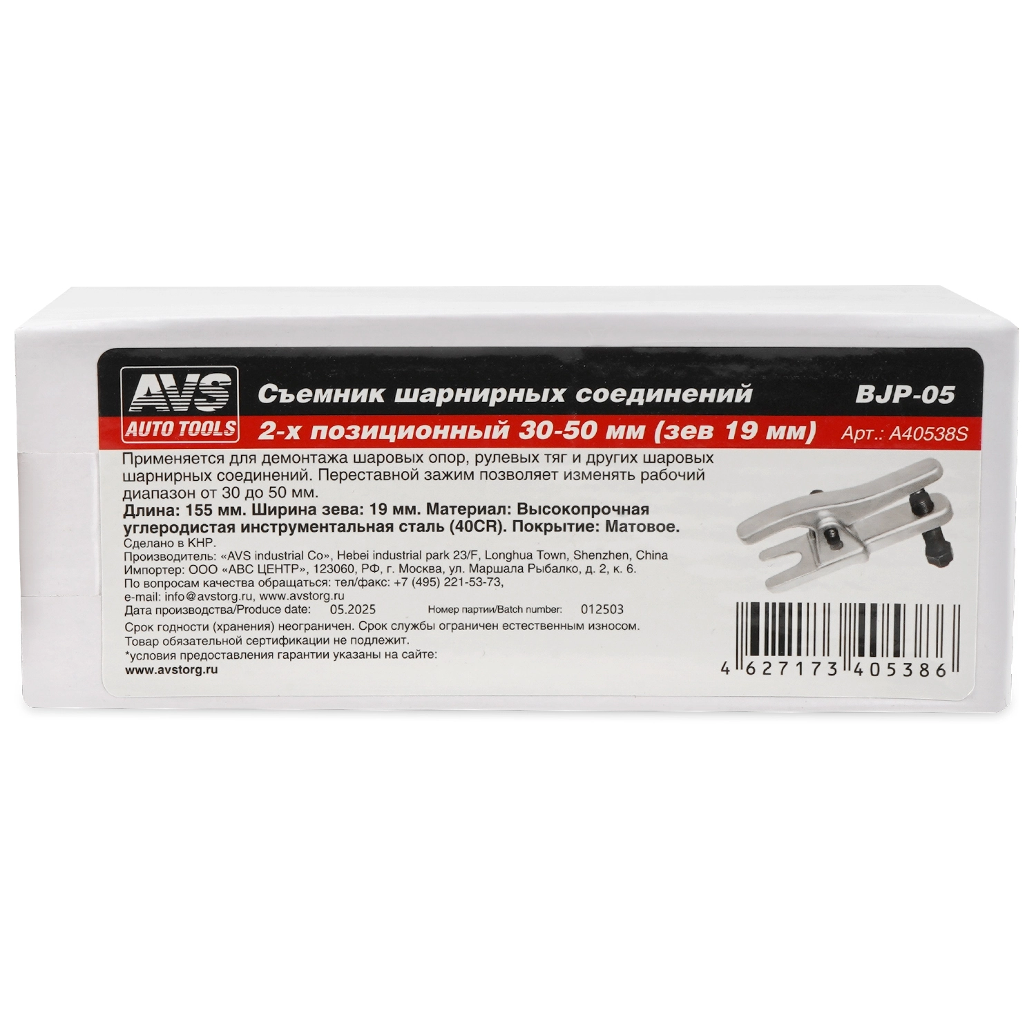 Съемник шарнирных соединений AVS BJP-05 (зев 19 мм) 2-х позиционный 30-50 мм