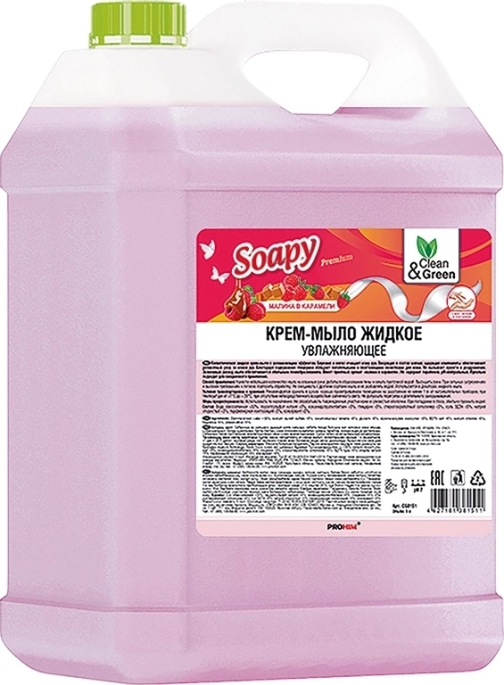 Крем-мыло жидкое Soapy малина в карамели увлажняющее 5 л. Clean&Green CG8151