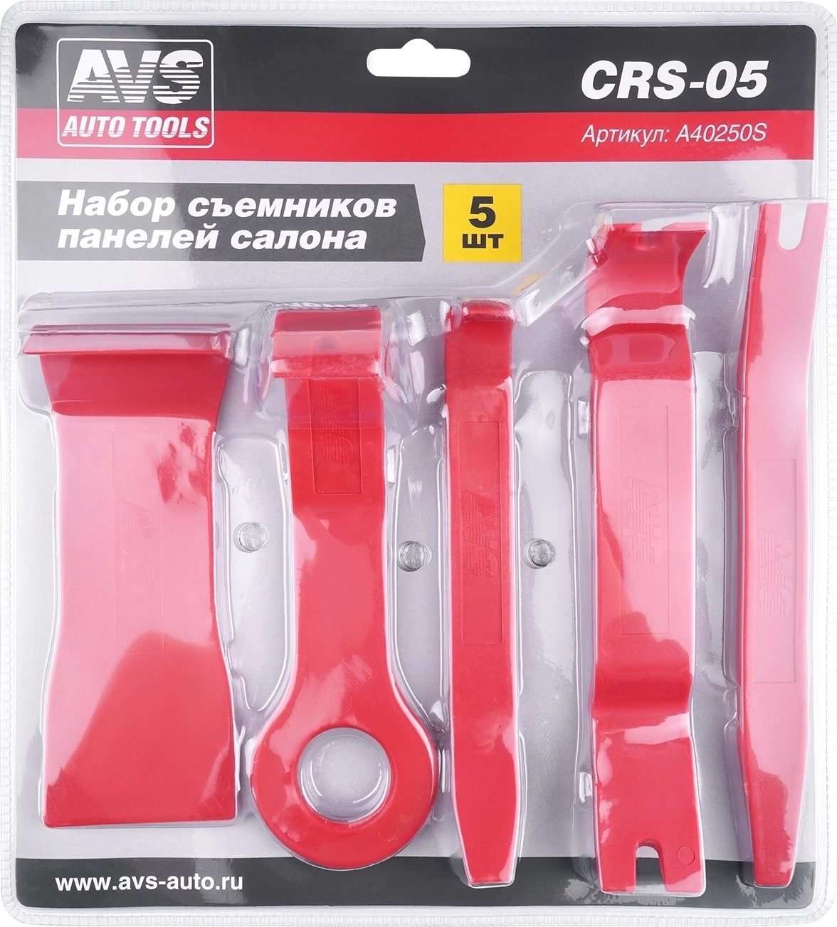 AVS CRS-05 - станет отличным помощником как для специалиста по установке автомобильного оборудования, так и для обычного автолюбителя. Данные инструменты используются для установки и снятия в Вашем автомобиле молдингов, дверных карт, автомобильных магнитол и аудиосистем, для демонтажа отдельных частей приборной панели, обшивки, проводки и др.
