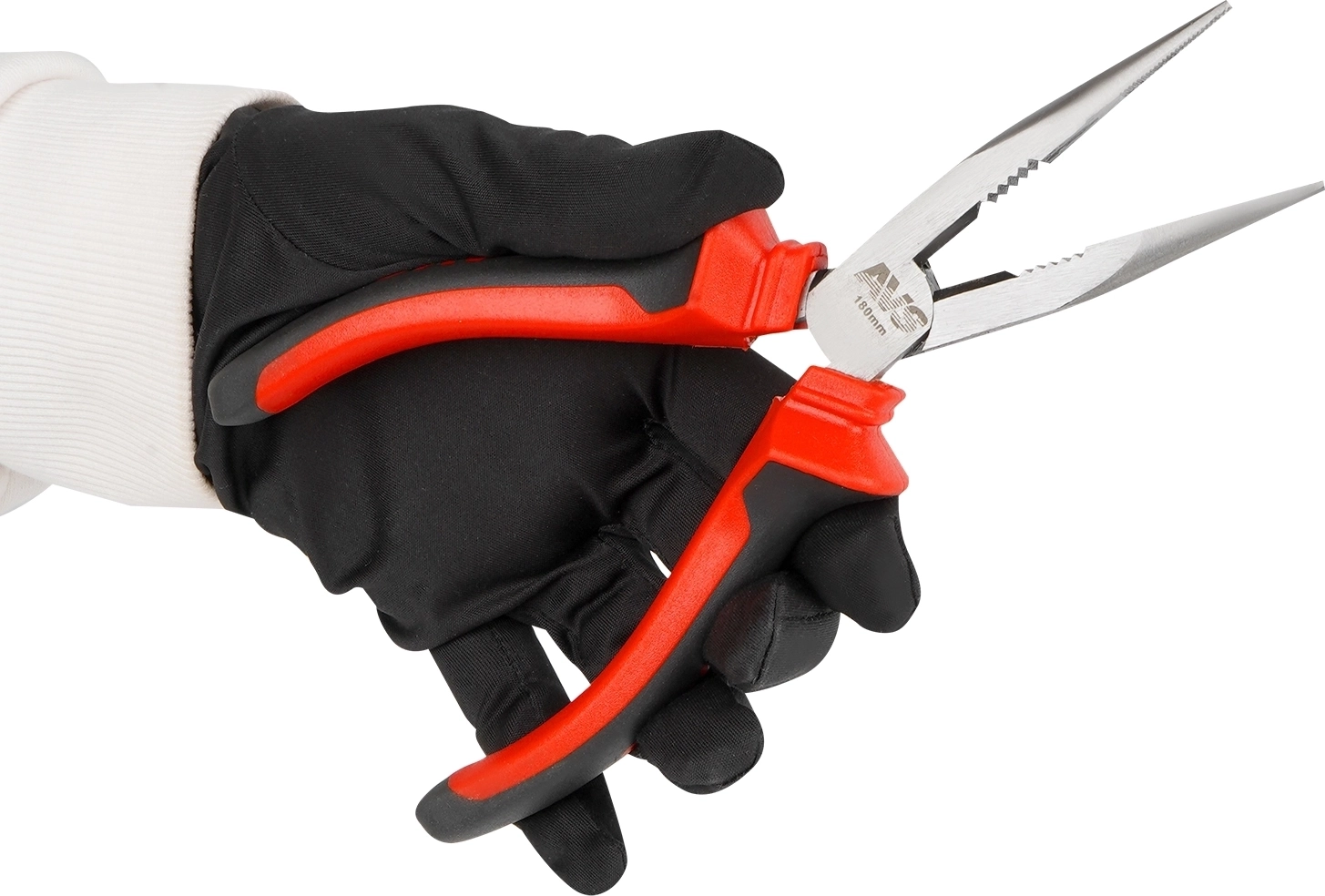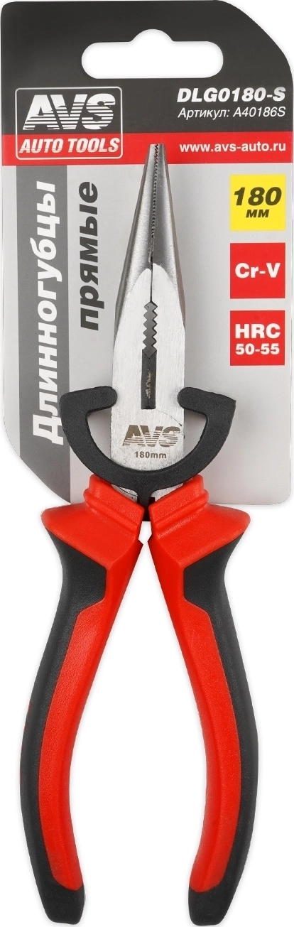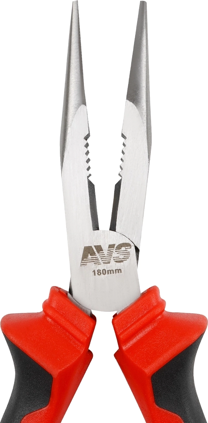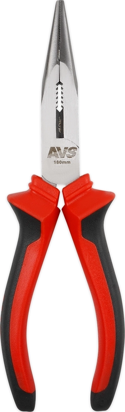Длинногубцы прямые AVS DLG0180-S (180 мм) - хромованадиевая сталь 45, твердость 50-55 HRC, двухкомпонентные пластиковые рукоятки