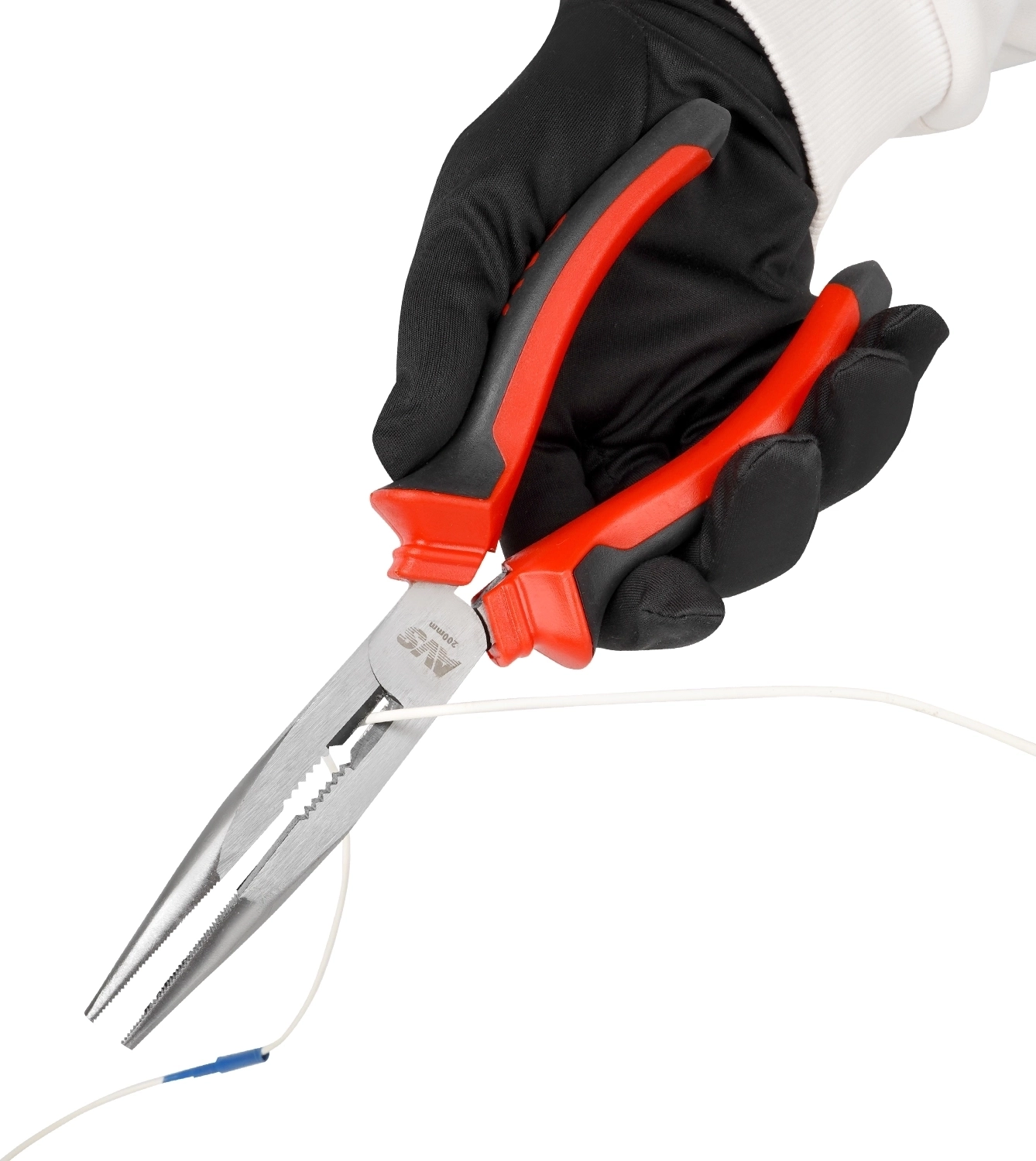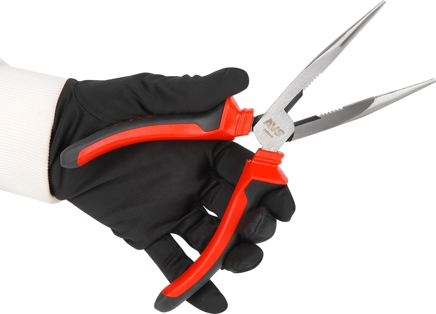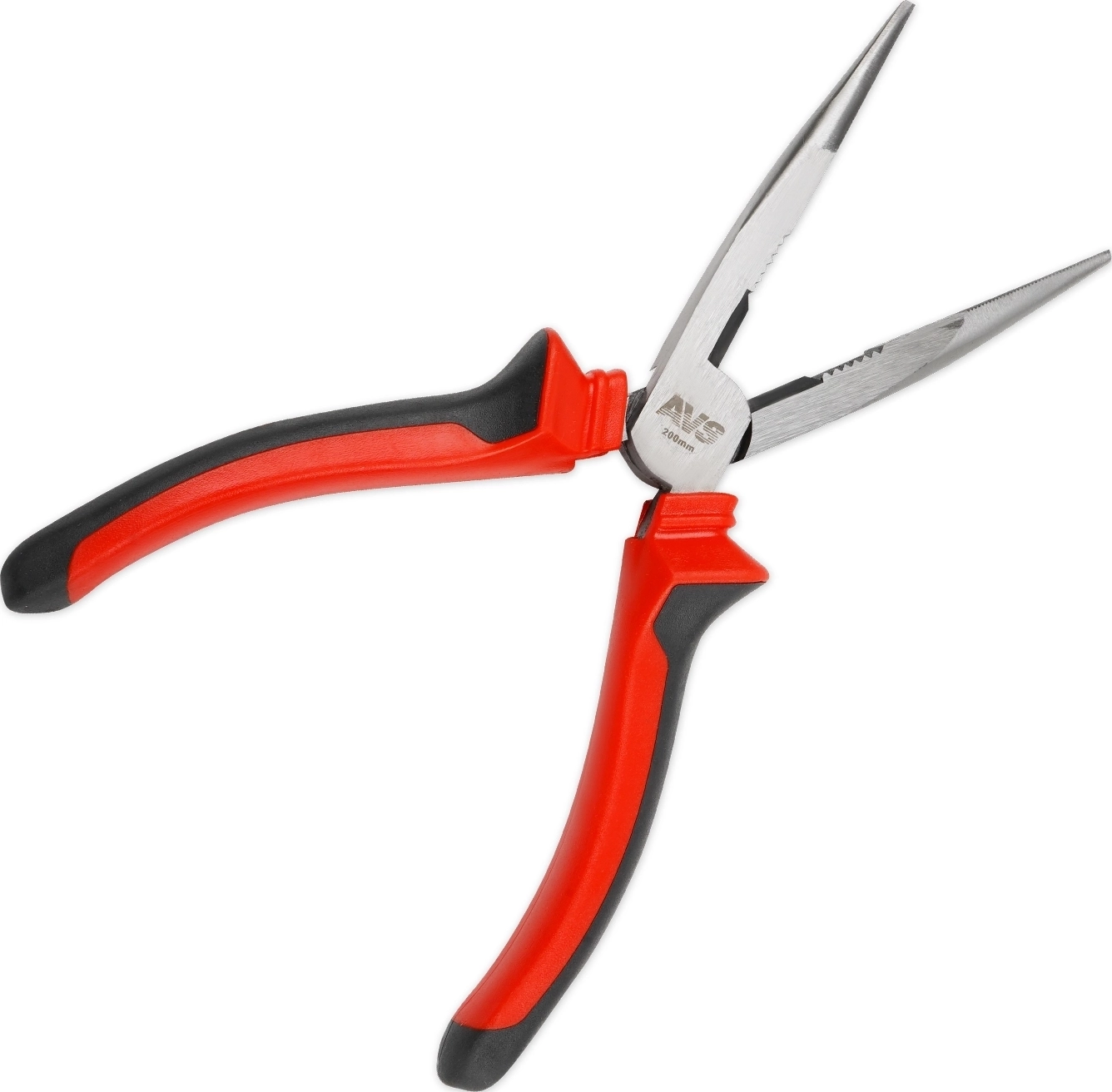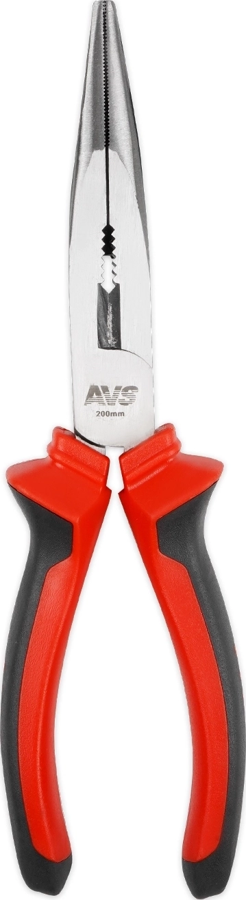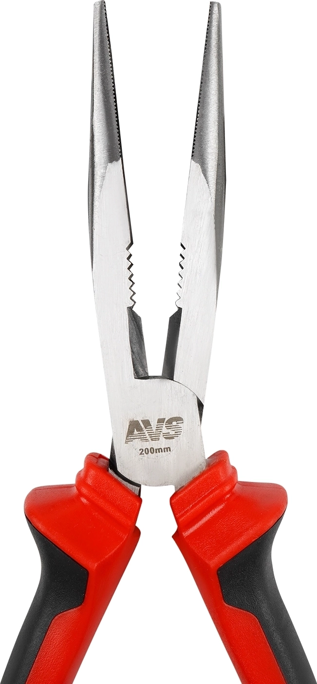 Длинногубцы прямые AVS DLG0200-S (200 мм) - хромованадиевая сталь 45, твердость 50-55 HRC, двухкомпонентные пластиковые рукоятки