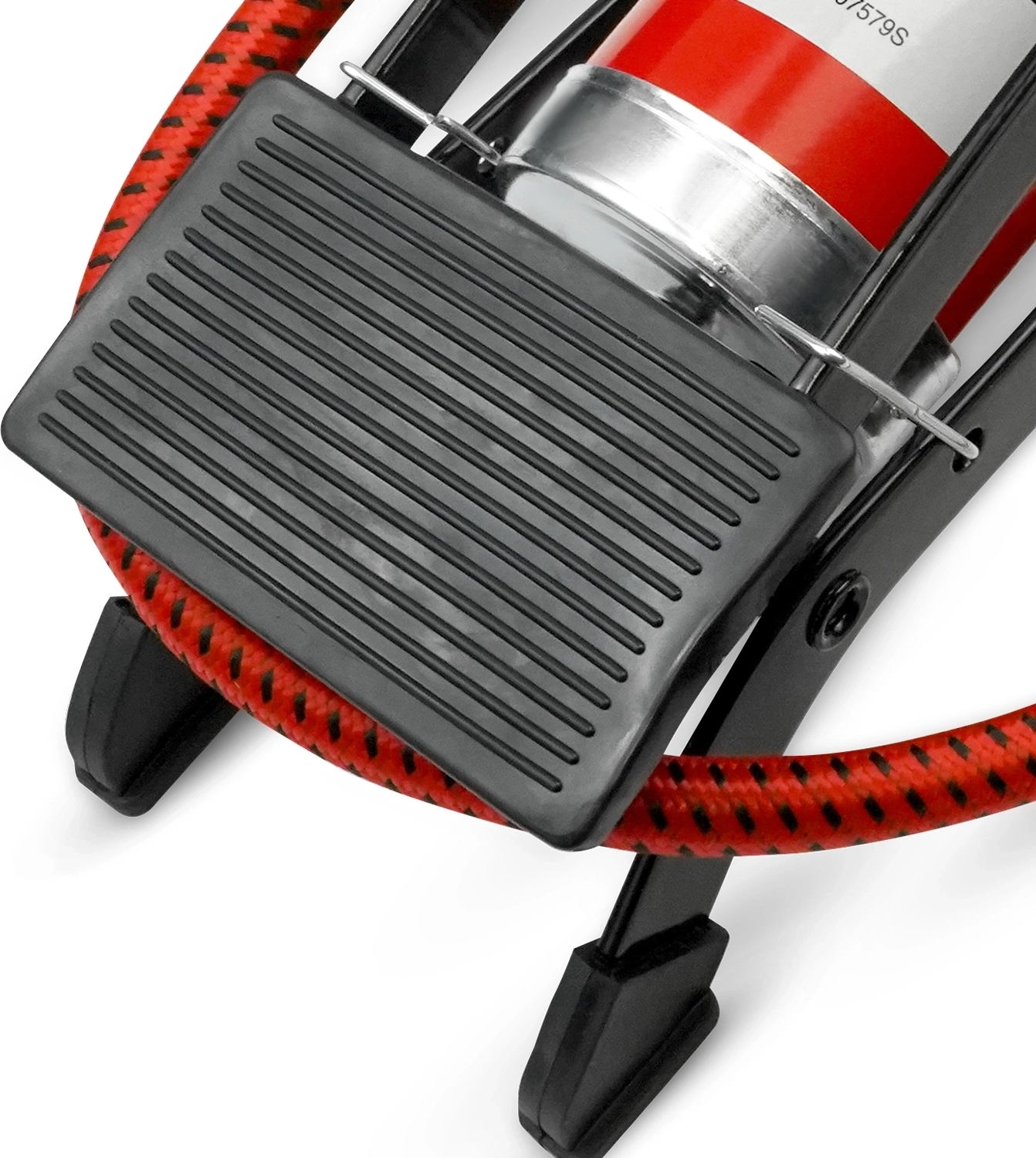 Насос состоит из опорной рамы, педали, поршня со штоком, цилиндра, возвратной пружины, манометра со шлангом и невозвратным клапаном.