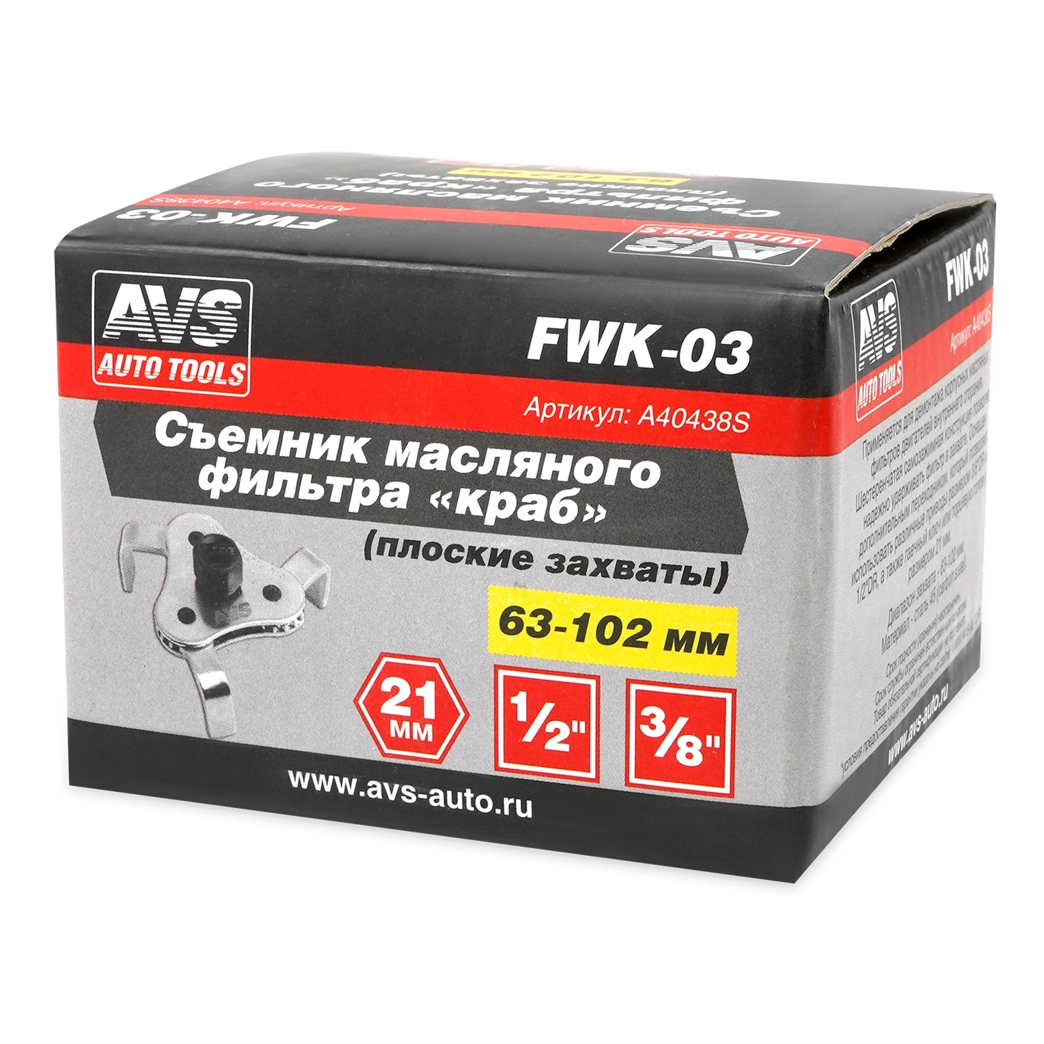 Съемник масляного фильтра «краб» AVS FWK-03 (63-102 мм) - плоские захваты, применяется для демонтажа корпусных масляных фильтров