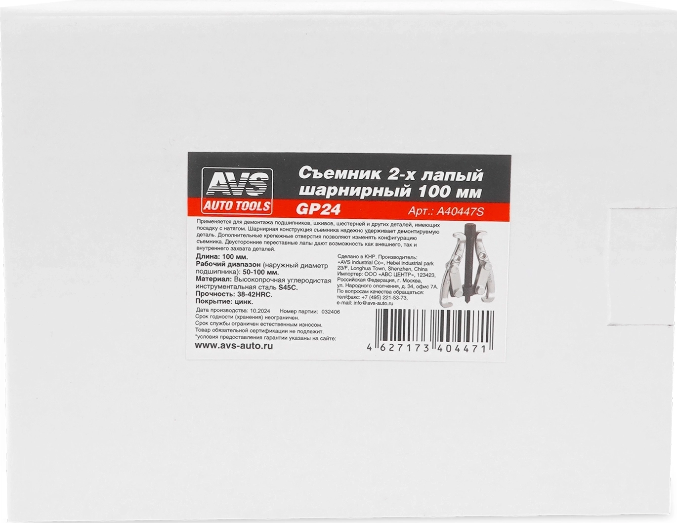 Съемник шарнирный 2-х лапый AVS GP24 (100 мм) - рабочий диапазон 50-100 мм, материал сталь (S45C), прочность 38-42HRC, покрытие цинк